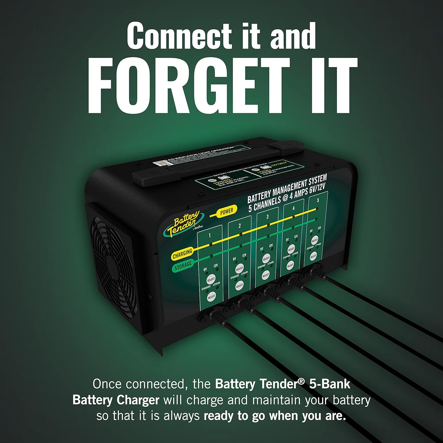 Battery Tender 5 Bank Multibank Charger - 20 AMP (4 AMPs Per Bank) - Selectable 12V / 6V - Smart and Switchable 12V Multi Battery Charger and Maintainer for Automotive and Marine - 021-0133-DL-WH