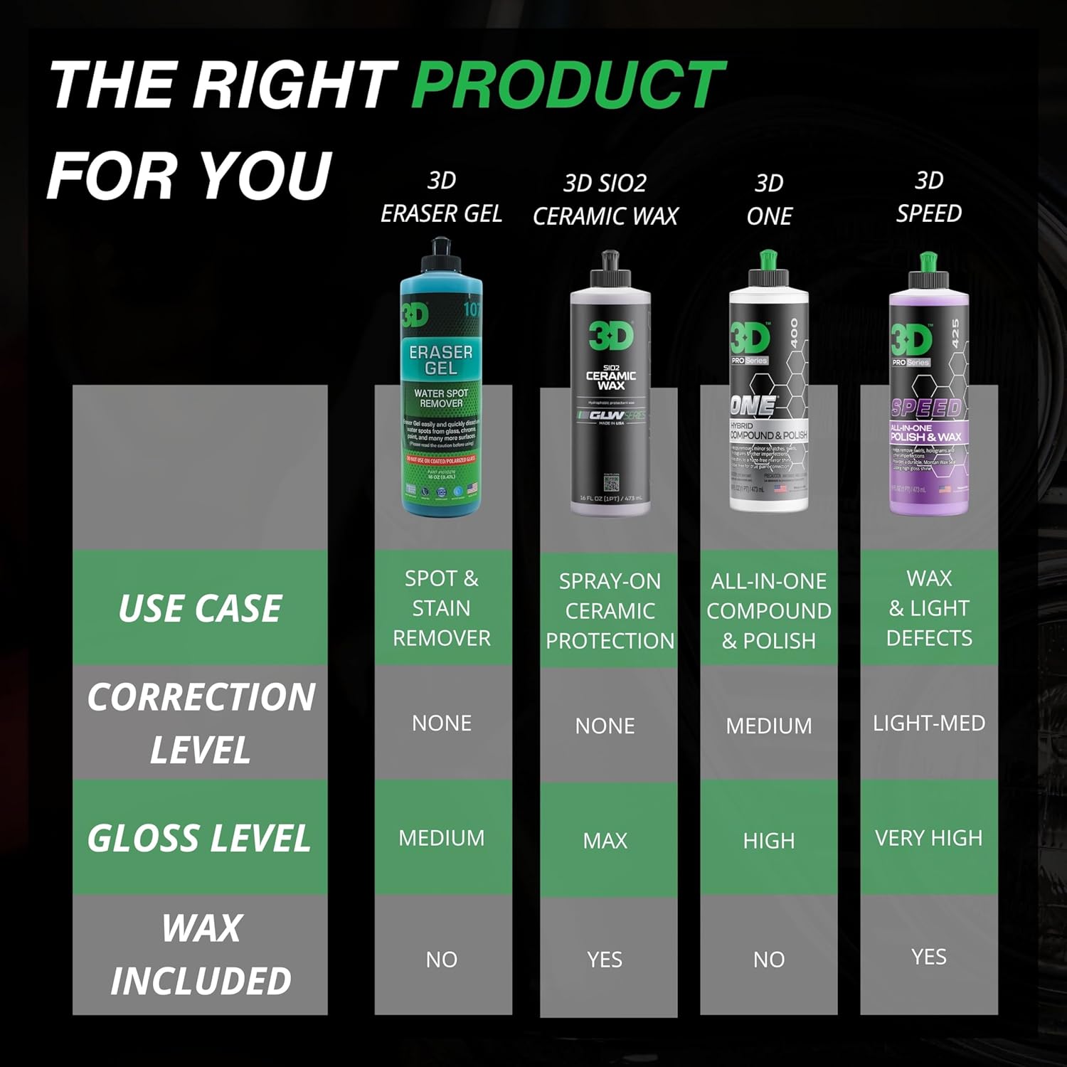 - Perfect for DIY Detailers and Pros: Whether you're in your driveway or working in a pro shop, 3D Eraser Gel makes water spot removal easier and faster. Skip expensive services and do it right at home—no special tools needed. Just follow the instructions and enjoy pro-level results