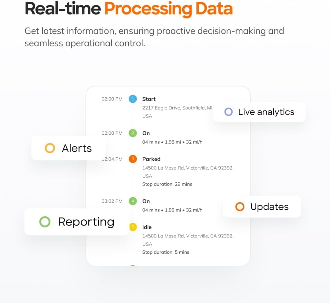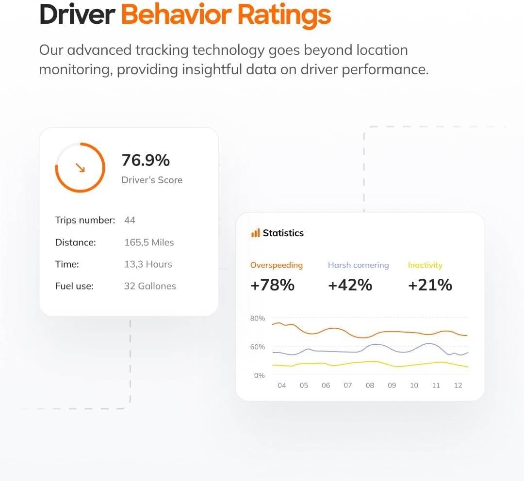 - IDEAL FOR FLEETS - MORE THAN TRACKING: Track vehicle routes, multiple vehicles with driving history, see idling time, and how drivers are treating your vehicles. Harsh acceleration, harsh braking, and mileage can be tracked. Group vehicles by type within our app. Designed for tracking rental commercial fleets.