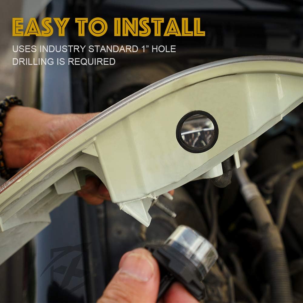 - 1 INCH HOLE DRILLING REQUIRE: Easily replaces traditional hideaway strobe with existing 1" hole, mounts onto any 1" hole in headlights, fog light, tail lights and other various light assemblies.