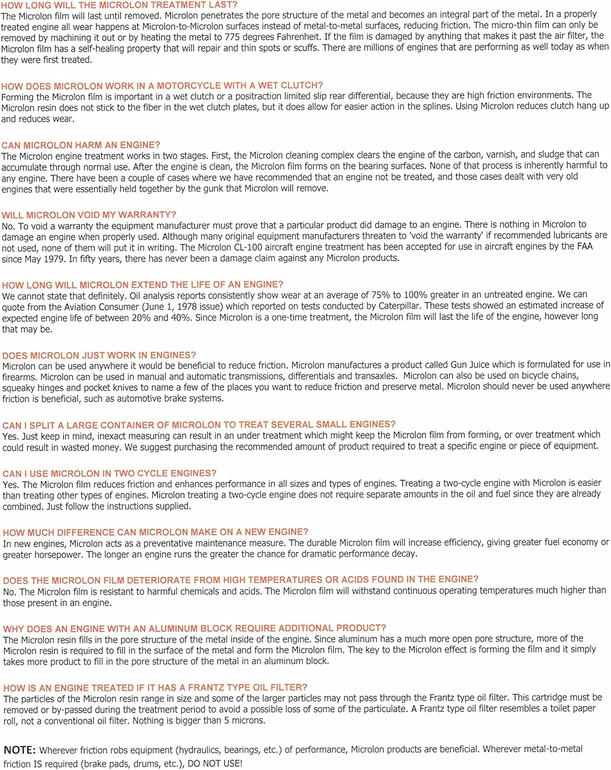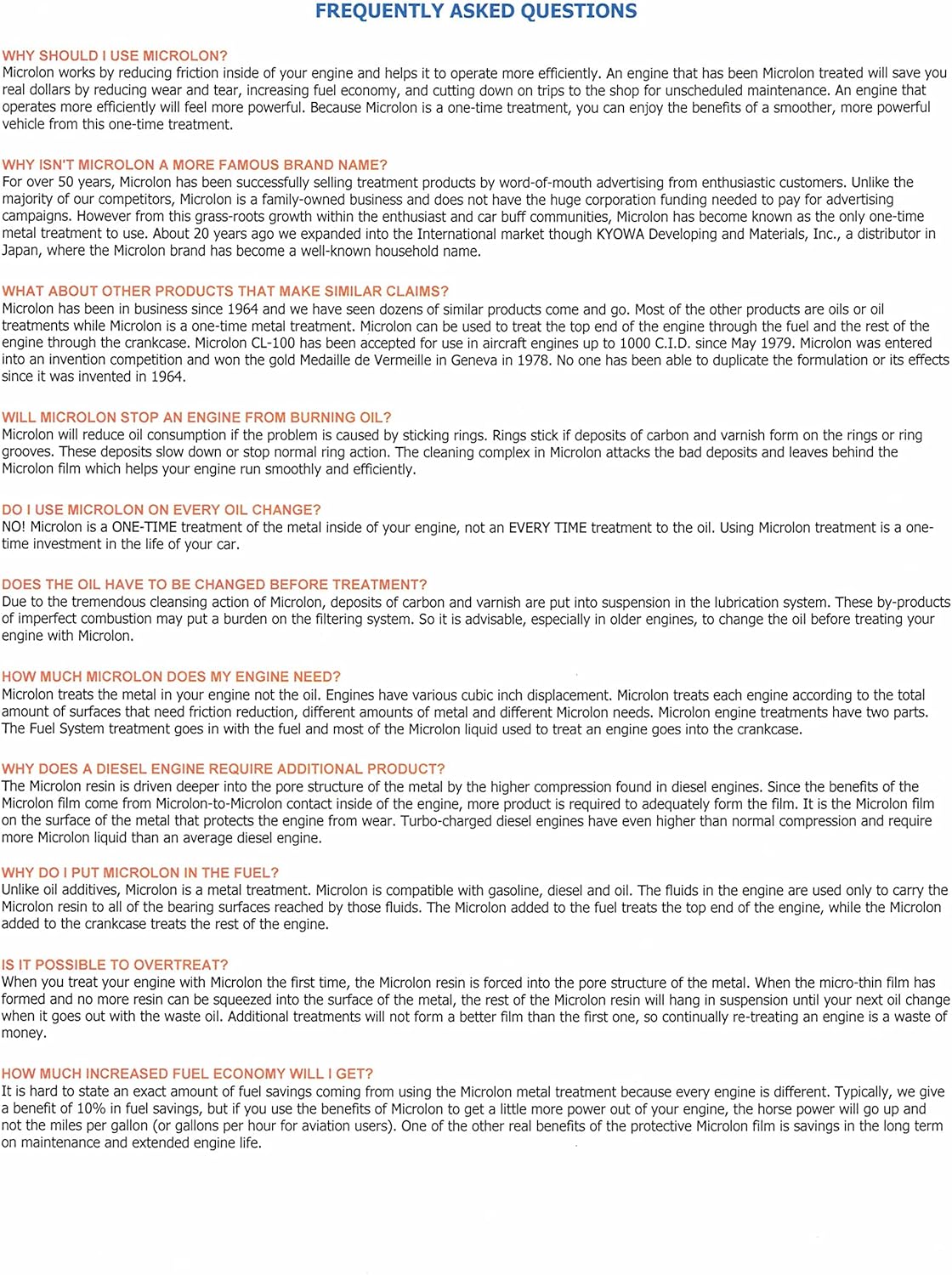 - Microlon protecting engines for over 50 years