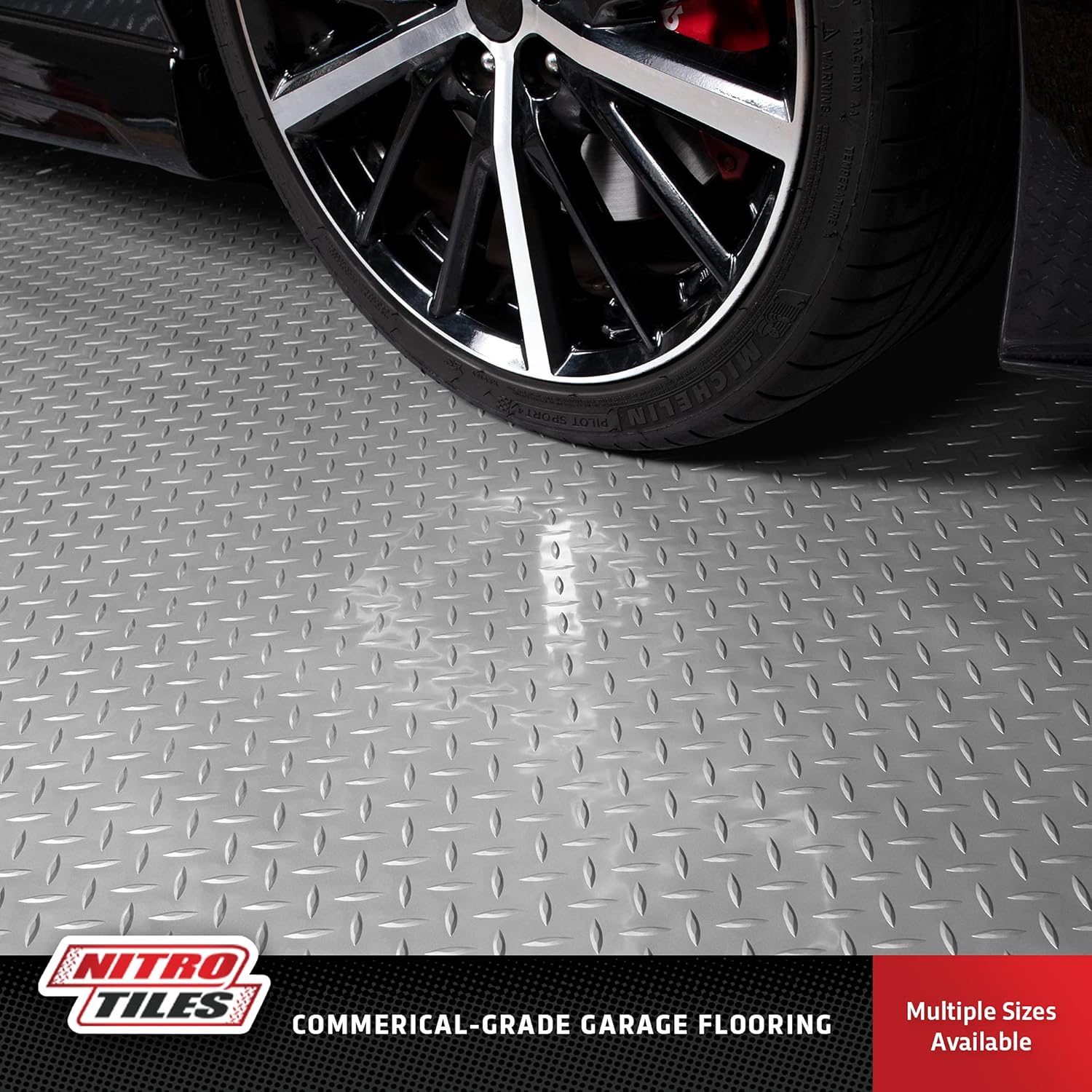 IncStores 2.5mm Thick Commercial-Grade Nitro Roll Garage Floor Mat | Flexible Vinyl Floor Mat for a Stronger and Safer Garage, Workshop, or Trailer | Diamond-Plate, Stainless Steel, 10' x 40'