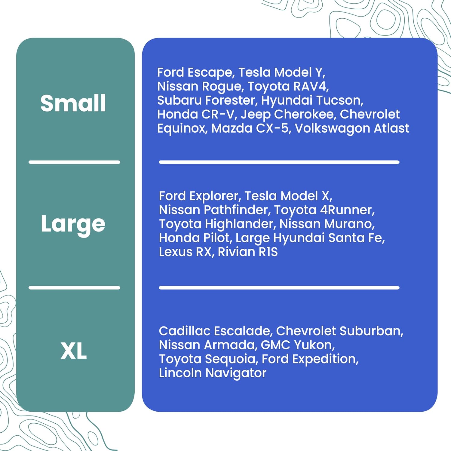 - CUSTOMIZED FIT FOR YOUR VEHICLE: The 4Knines SUV cargo liner patented design is engineered to fit vehicles with 60/40 or 50/50 split seats and center cargo pass-throughs. Measuring 56" x 106" (with a 22" bumper flap), it offers a snug fit for most SUVs and minivans, providing reliable protection for your vehicle’s cargo area. Fits 2024, 2025, and 2026 models great!