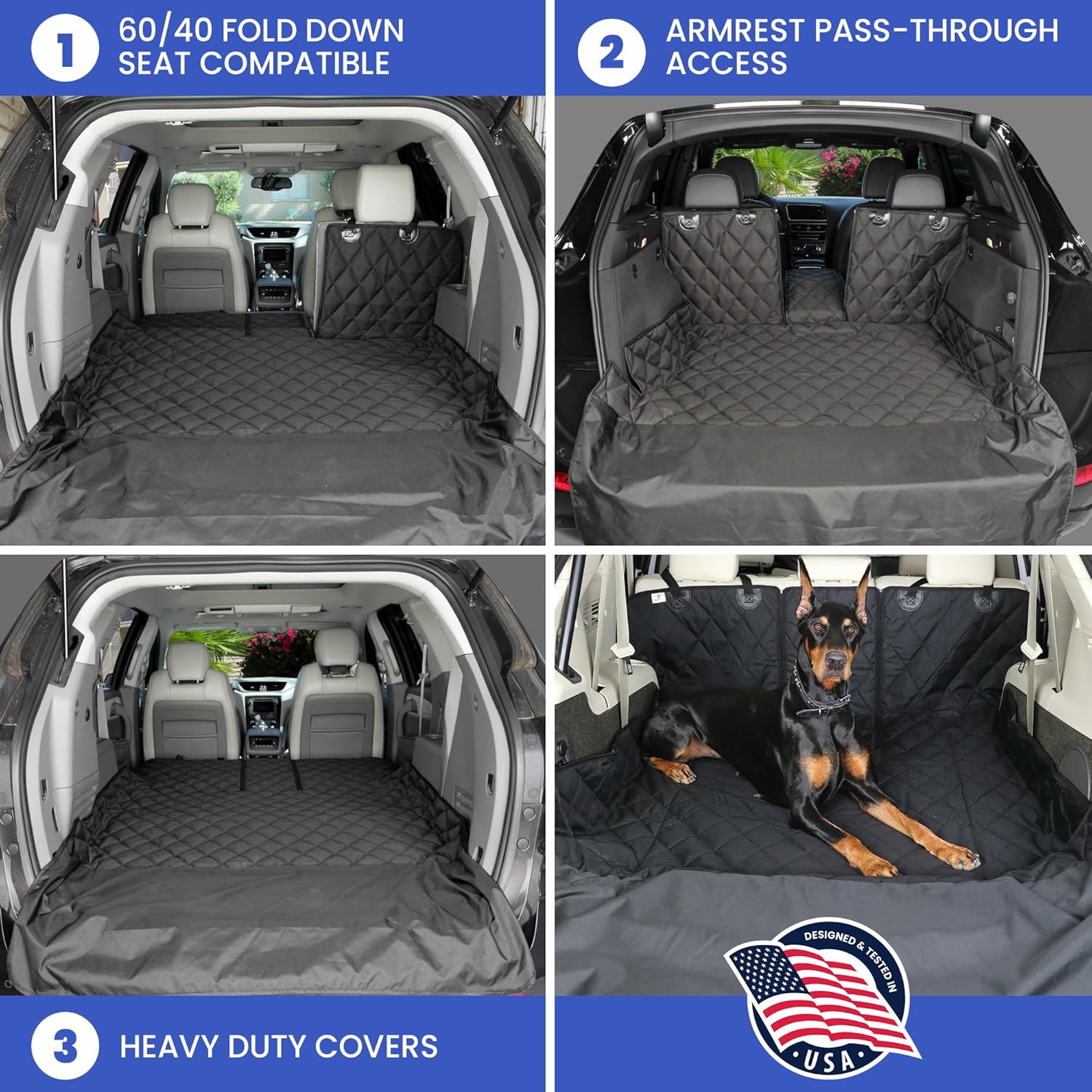4Knines SUV Cargo Liner for Dogs, Trunk Mat for SUV, Durable Cargo Cover, Protector – Compatible with 60/40 Split Bench & Armrest Pass-Through, Waterproof, Machine Washable, Non-Slip (X Large, Black)