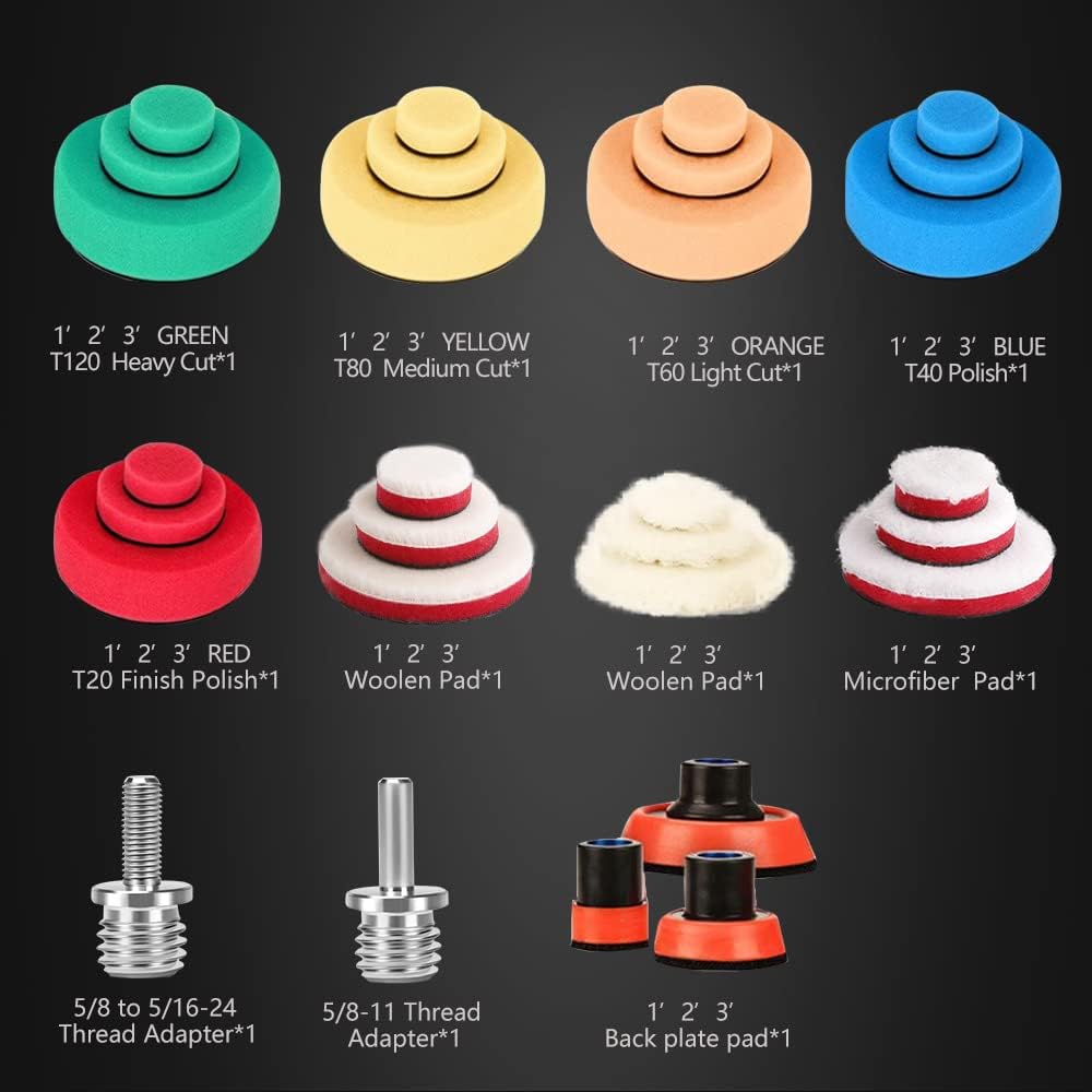 - ◆What You Will Have◆ 24pcs mixed polishing and wool polishing pads, 3pcs mixed size polishing backing pads, 2pcs adapters and our best service.