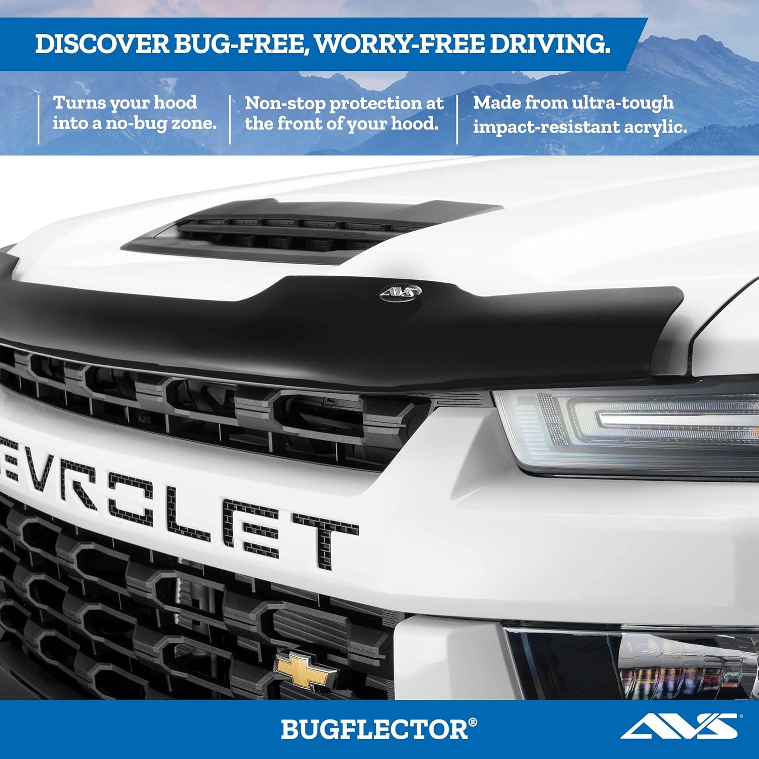 - BLOCKS BUGS | Built to deflect insects, small rocks, and road debris with its medium-profile design. Shields your hood, windshield, fenders, and lights from chips, dents, and dings.