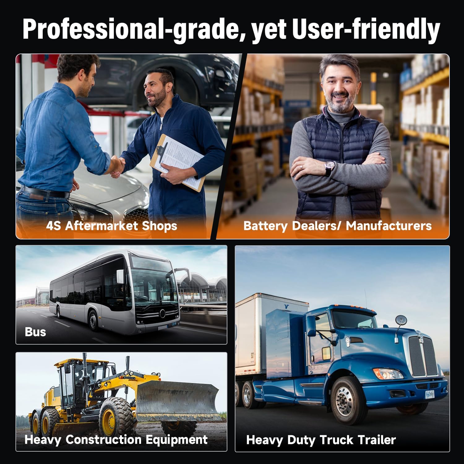 - Professional-Grade Yet User-Friendly - Ideal for battery manufacturers/dealers, 4S shops, specialized garages, skilled technicians/ mechanics, DIYers, car owners and heavy construction equipment and heavy duty truck trailer, the BT705 suits 24V vehicles like trucks and buses, as well as 12V vehicles like cars, motorcycles, boats, and mowers. Its easy-to-read display and advanced conductance testing deliver precise, reliable results for all users.