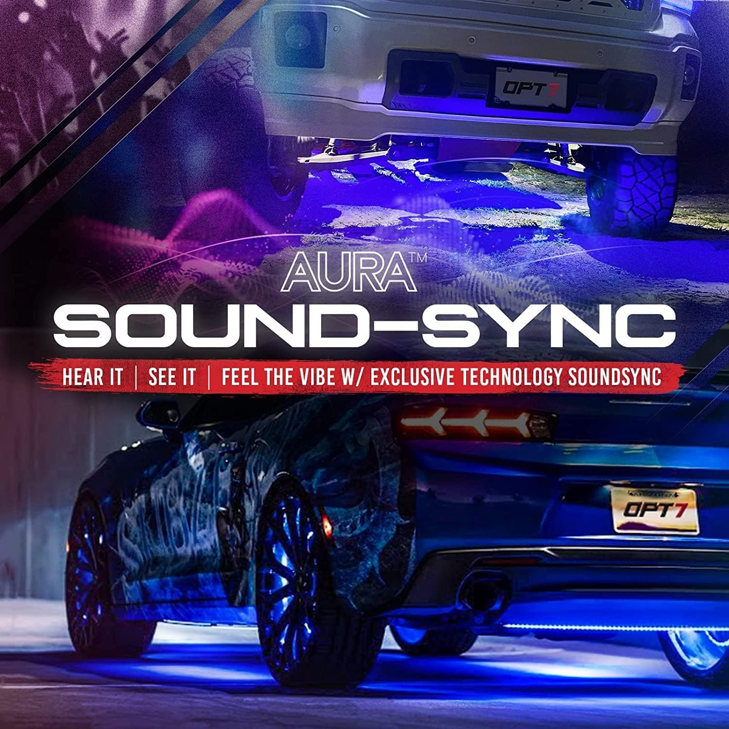 OPT7 Aura Aluminum Underglow LED Lighting Kit for Truck with Remote Control, Exterior Neon Accent Underbody Strip, Multicolor Mode, Waterproof, Soundsync, Aluminum Casing, Door Assist, Smart LED