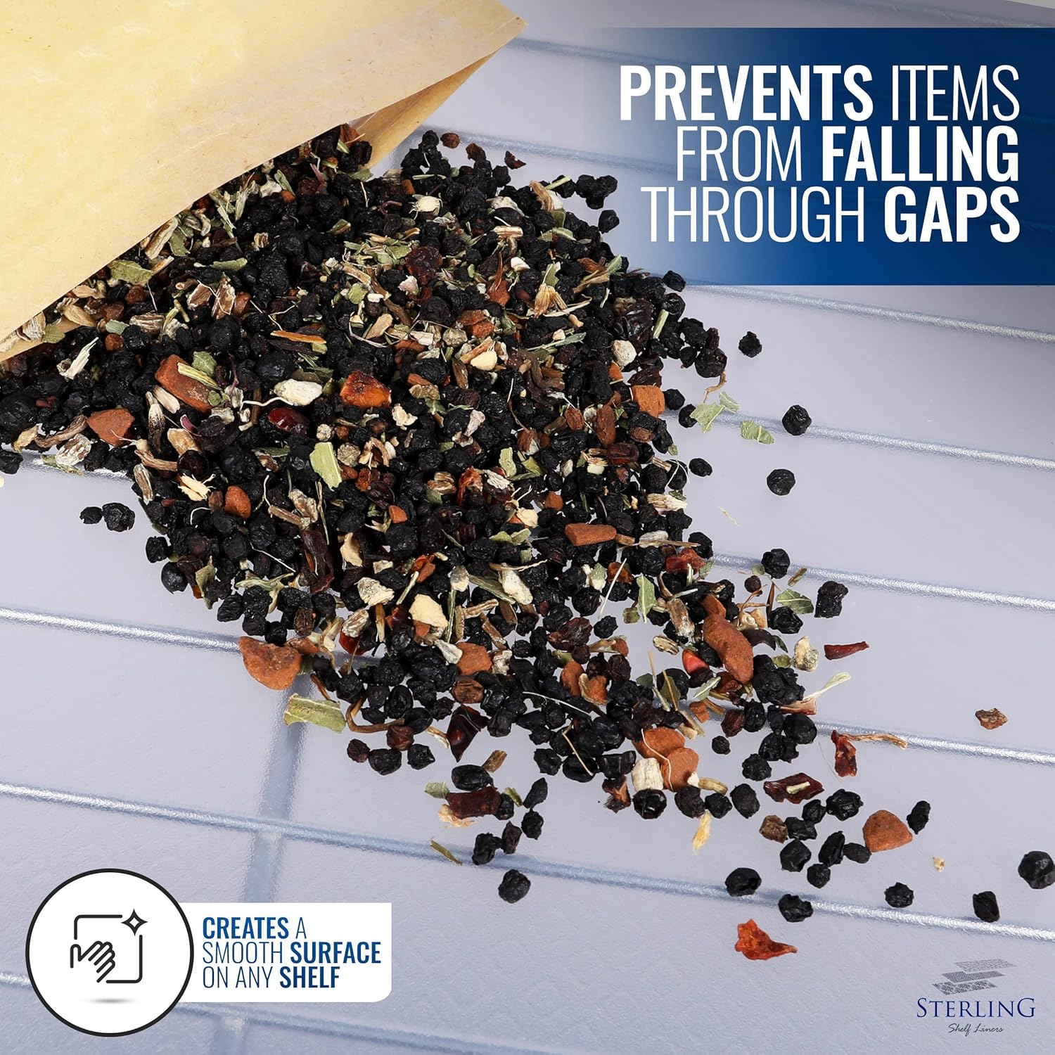 - Elegant Design: Our shelf liner for wire shelving system is offered in a variety of semi-translucent, frosted colors to match your interior decor. Match the color to your pantry, garage or utility cupboard
