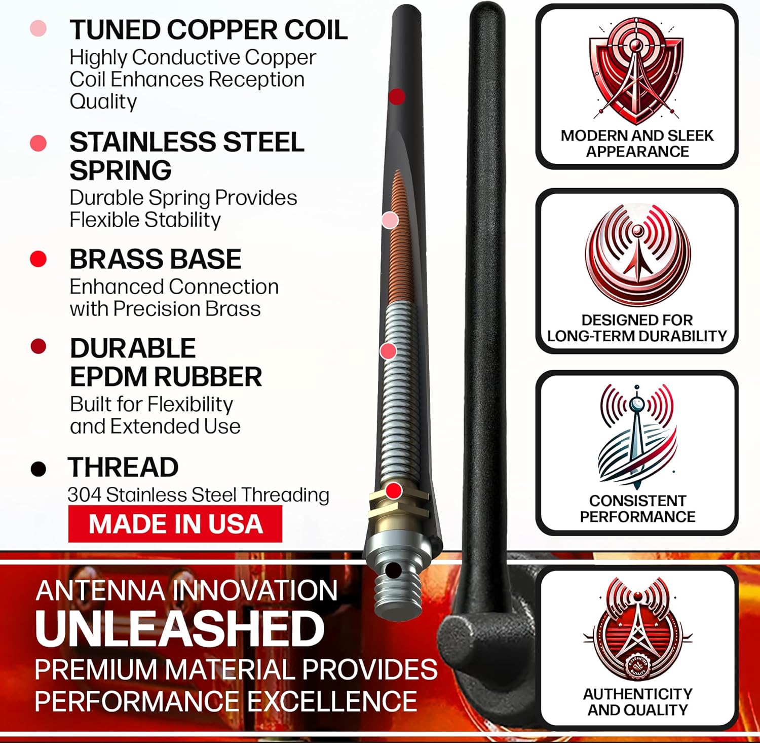 - TRUSTED USA BRAND - These accessories are assembled by a USA-based family-owned business with over 20 years of expertise, our short antenna is solely manufactured by us, ensuring top-tier quality, performance, and quality that you can trust.