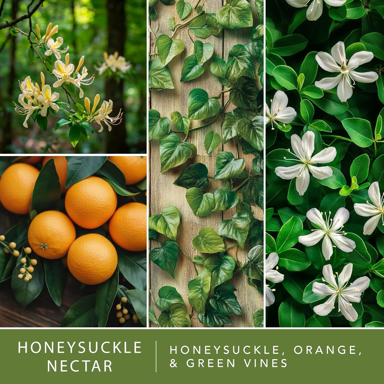 - HONEYSUCKLE, ORANGE BLOSSOM, GREEN VINES & MORE - Breathe in the joy of spring with vibrant green vines, sweet citrus, and blooming honeysuckle, softened by orange blossom, mimosa, radiant lotus, precious woods, and luminous musk.