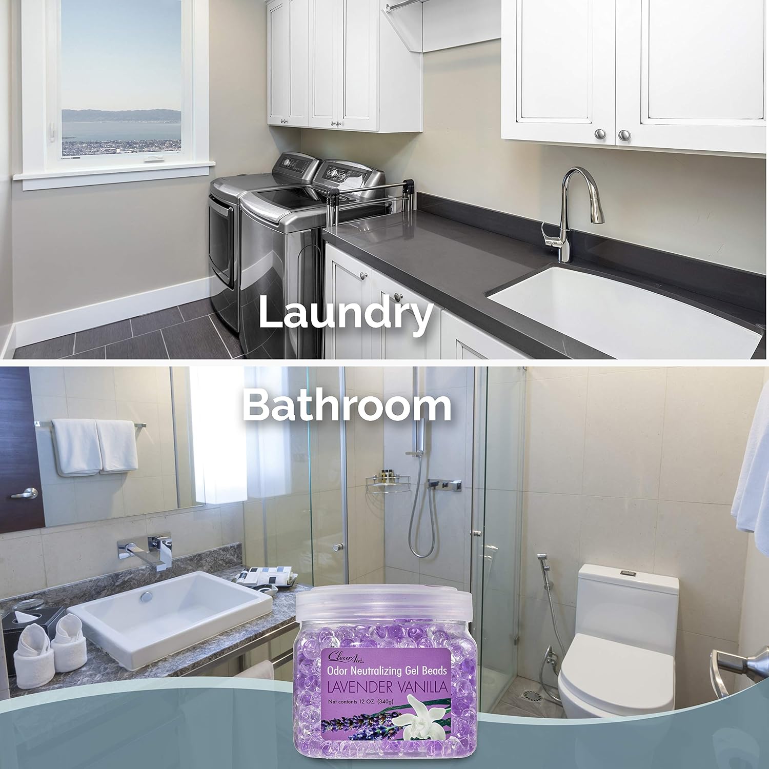 Clear Air Odor Eliminator Gel Beads - 12 oz, Pack of 2 - Air Freshener Made with Essential Oils - Eliminates Odors in Bathrooms, Cars, Boats, RVs & Pet Areas - Lavender Vanilla Scent