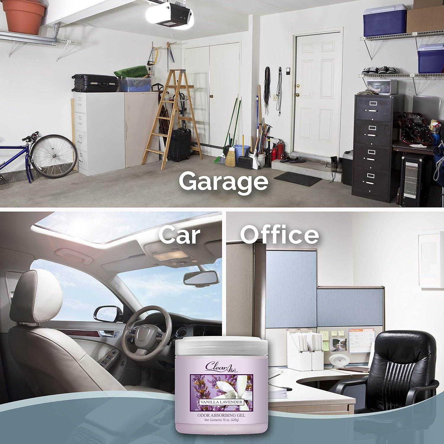 Clear Air Odor Absorber Gel - 15 oz, Pack of 2 - Air Freshener Absorbs and Eliminates Odors in Bathrooms, Cars, Boats, RVs and Pet Areas - Made with Essential Oils - Lavender Vanilla Scent