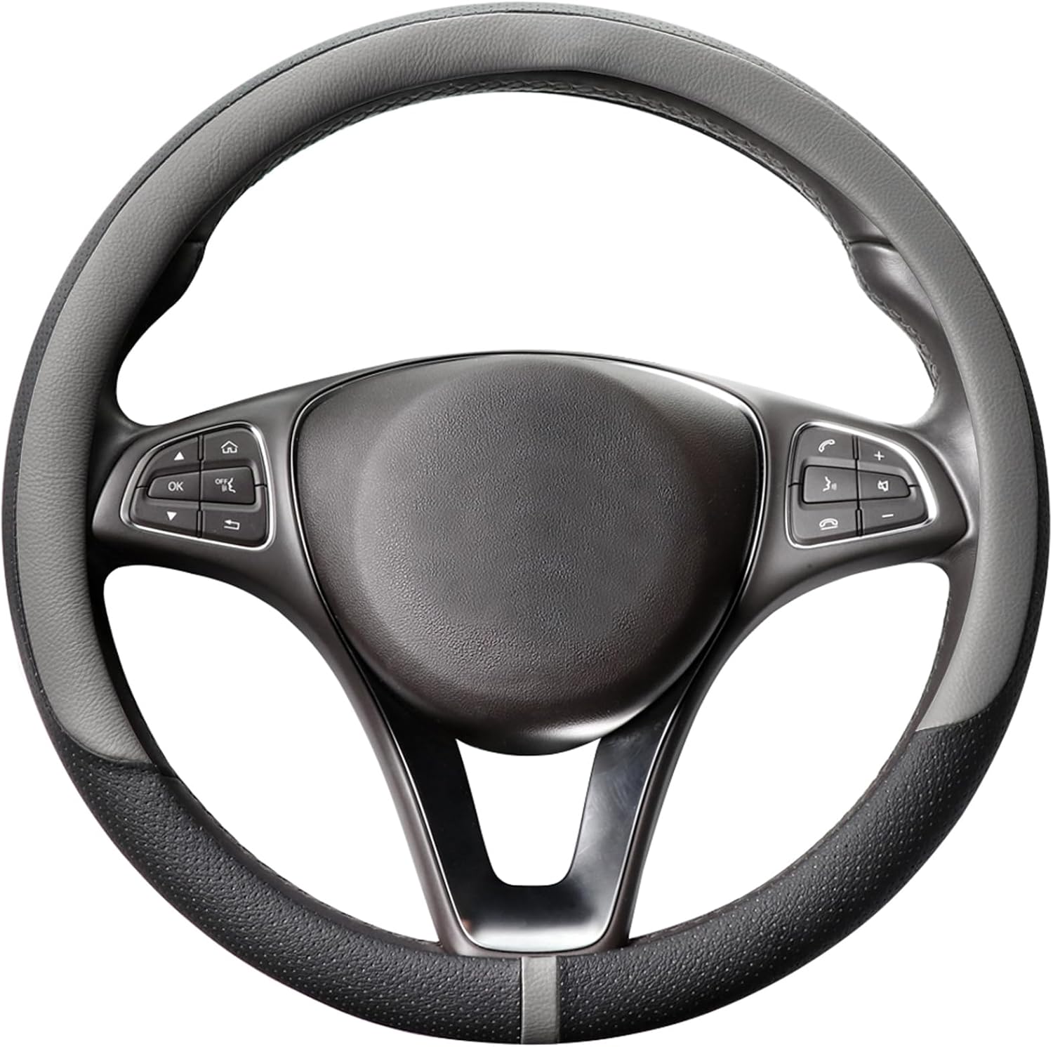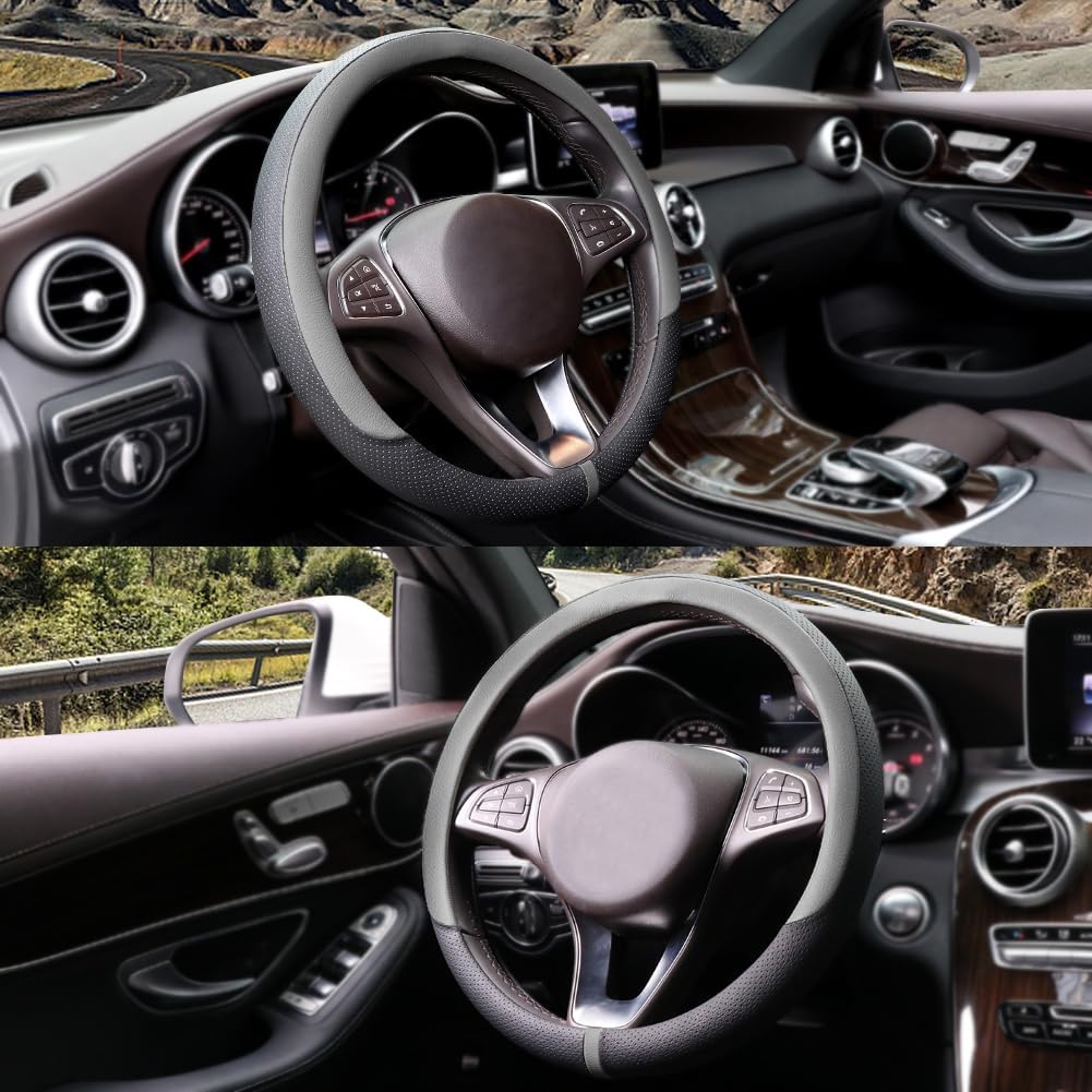 COFIT Breathable Car Steering Wheel Cover 15 inch Auto Universal Leather Wrap Non-Slip Steeringwheel Protector Automotive Interior Accessories, Grey (Suit for 14.5-15 inch)