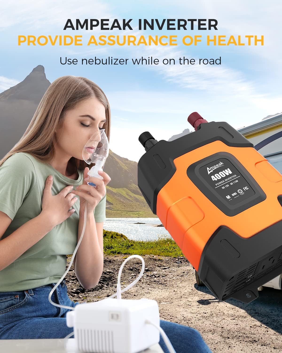 - Introducing our upgraded Ampeak 400W power inverter, designed with your convenience and safety in mind. Enjoy continuous power for your electronics and appliances on the go with 400W of power