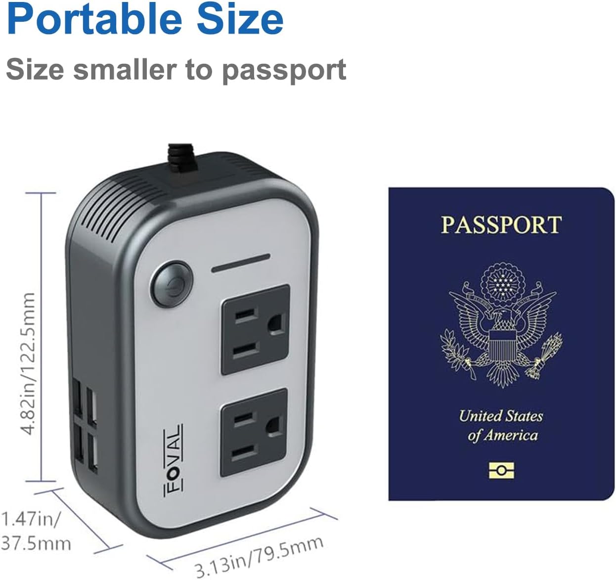 200W Car Power Inverter, FOVAL 12V DC to 110V AC Car Inverte with 4 USB Ports Car Outlet Adapter, Power Inverter for Vehicles, Car Plug Adapter Outlet for Laptop Computer Charger