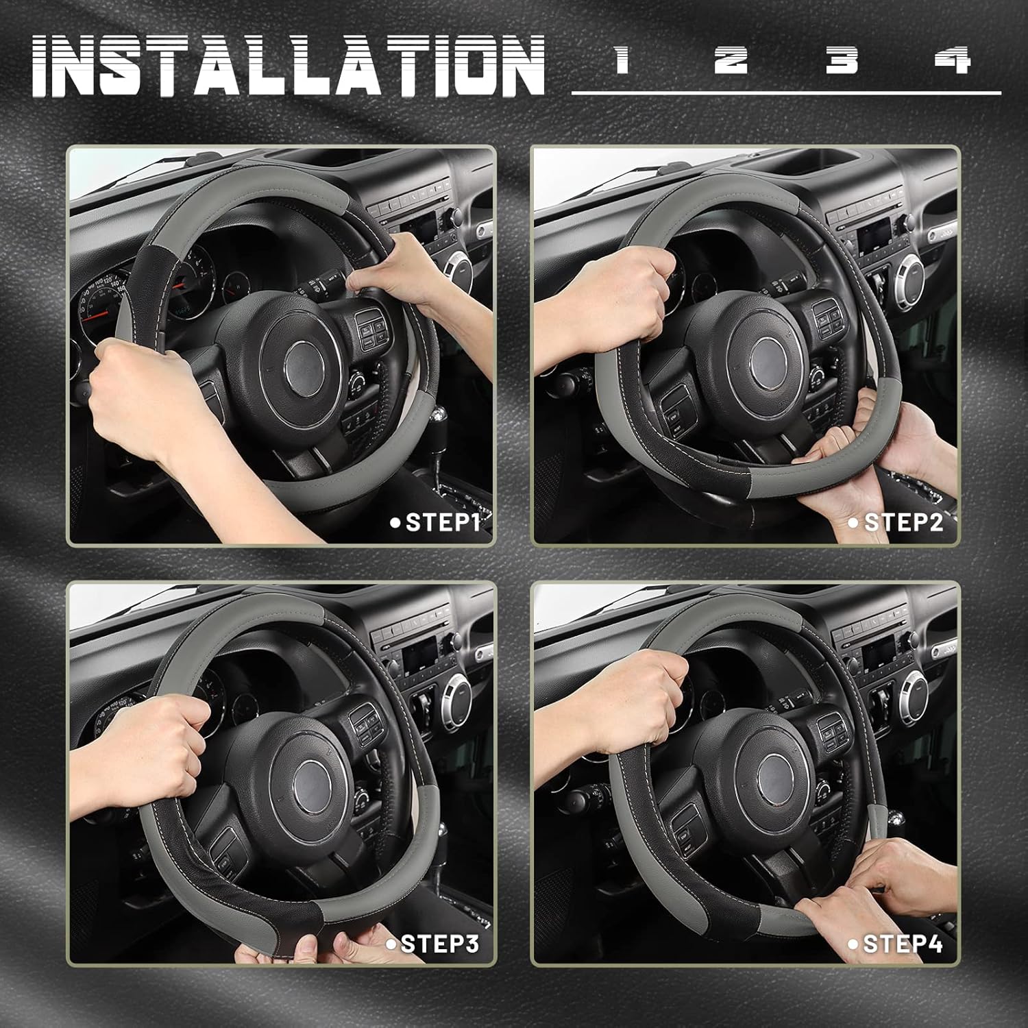 - NO MORE STICKY: The auto steering wheel cover is comfy to hold, it absorbs the hand-sweat that the summer heat causes, and allows you to grip the steering wheel much better.