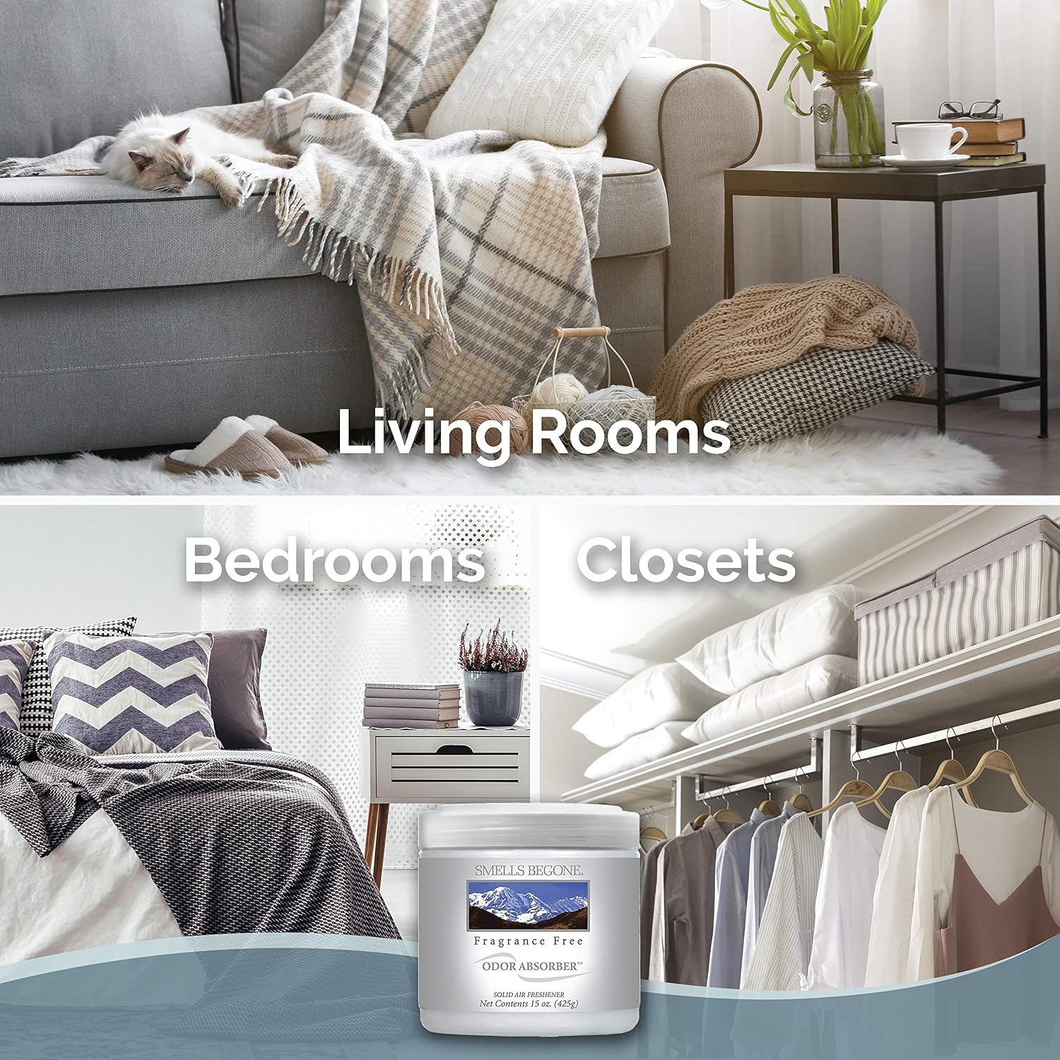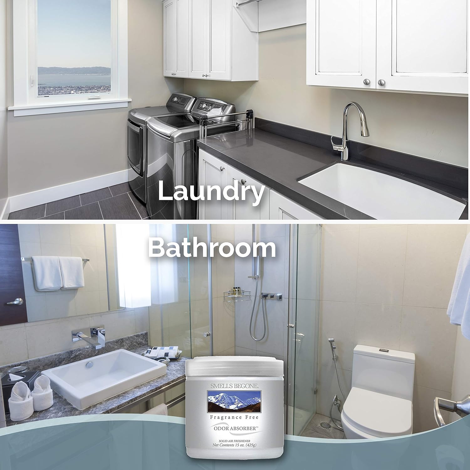 SMELLS BEGONE Air Freshener Odor Absorber Gel - 15 oz, Pack of 2 - Absorbs and Eliminates Odor in Pet Areas, Bathrooms, Cars, & Boats - Made with Essential Oils - Fragrance Free