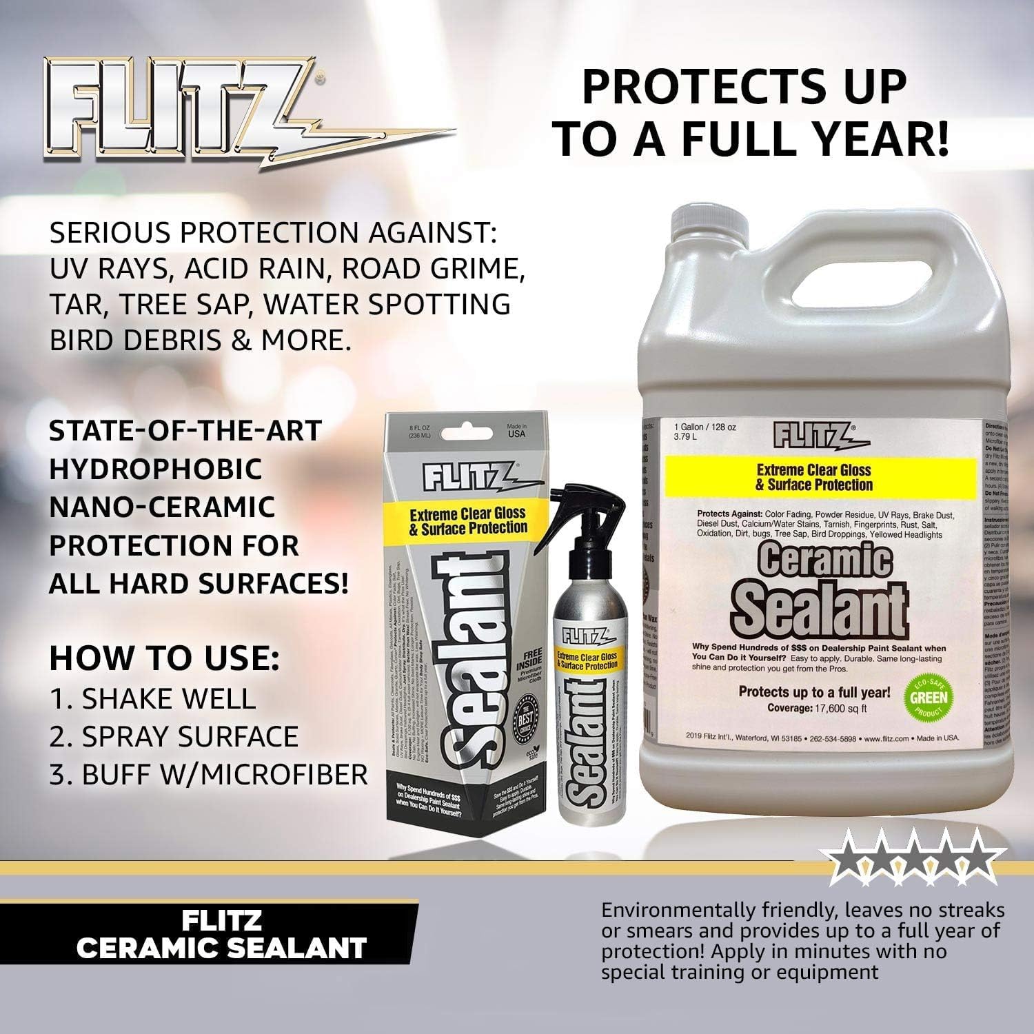 - PRO-GRADE CERAMIC SHIELD - Flitz Ceramic Coating Spray creates a durable barrier against water, dirt, UV rays, and every element in your path. Our ceramic glass coating's buff-off formula easily creates a shield thatโs ready for any adventure