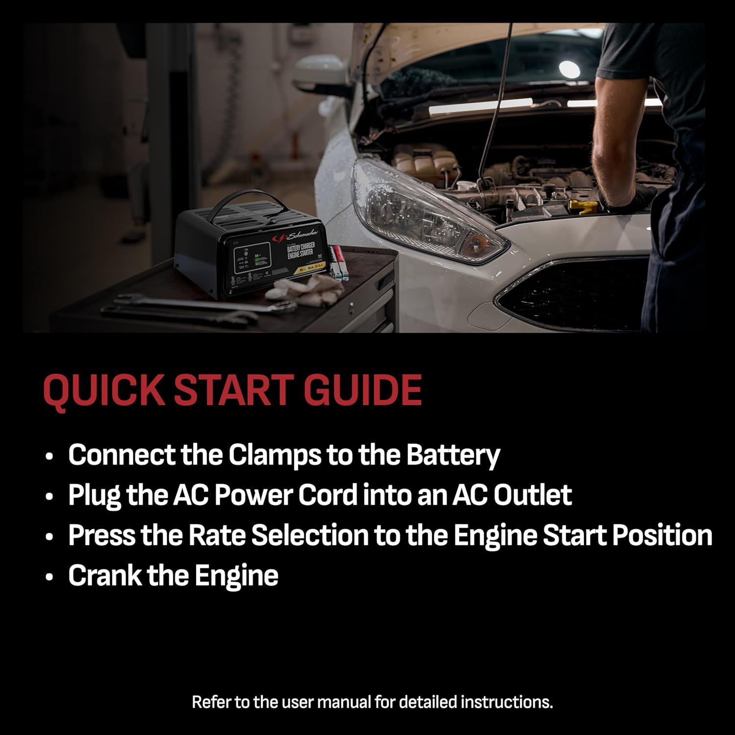 - Complete Package - Includes (1) SC1361 Battery Charger and Engine Starter, (1) user manual
