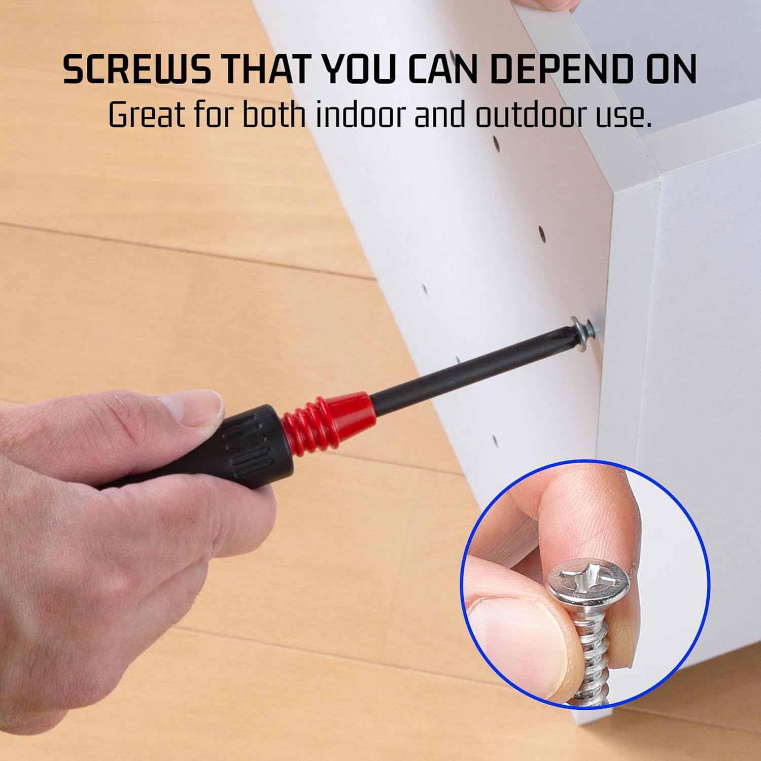 - 【Screws That You Can Depend On】Our Flat Head Wood Screws are very strong and are great for both indoor and outdoor use. This stainless is superior to regular steel and provides excellent rust resistance.