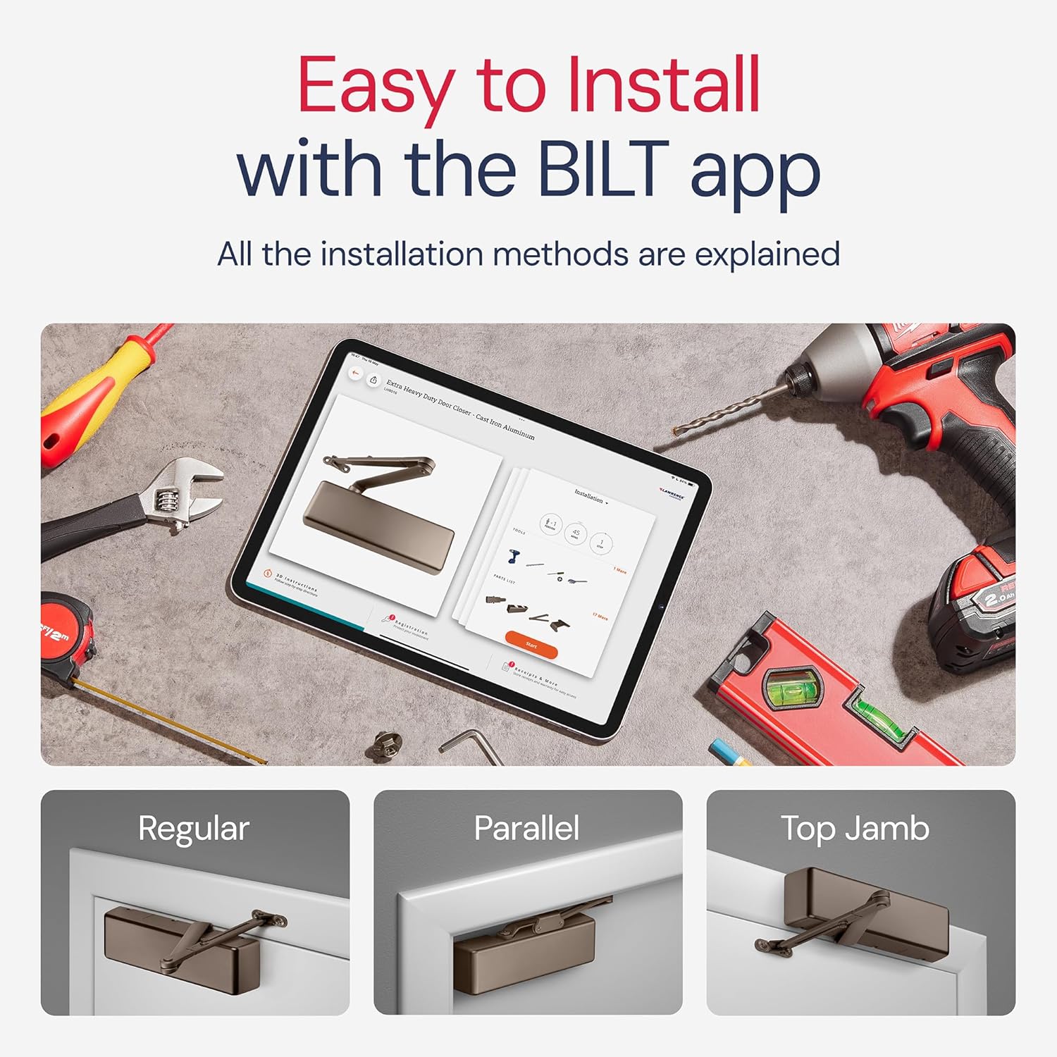 - Flexible Installation – Attach your closer in a left or right configuration to any common door frame and jamb material. Use a complete auto door closer set that accommodates wood, aluminum, & steel.