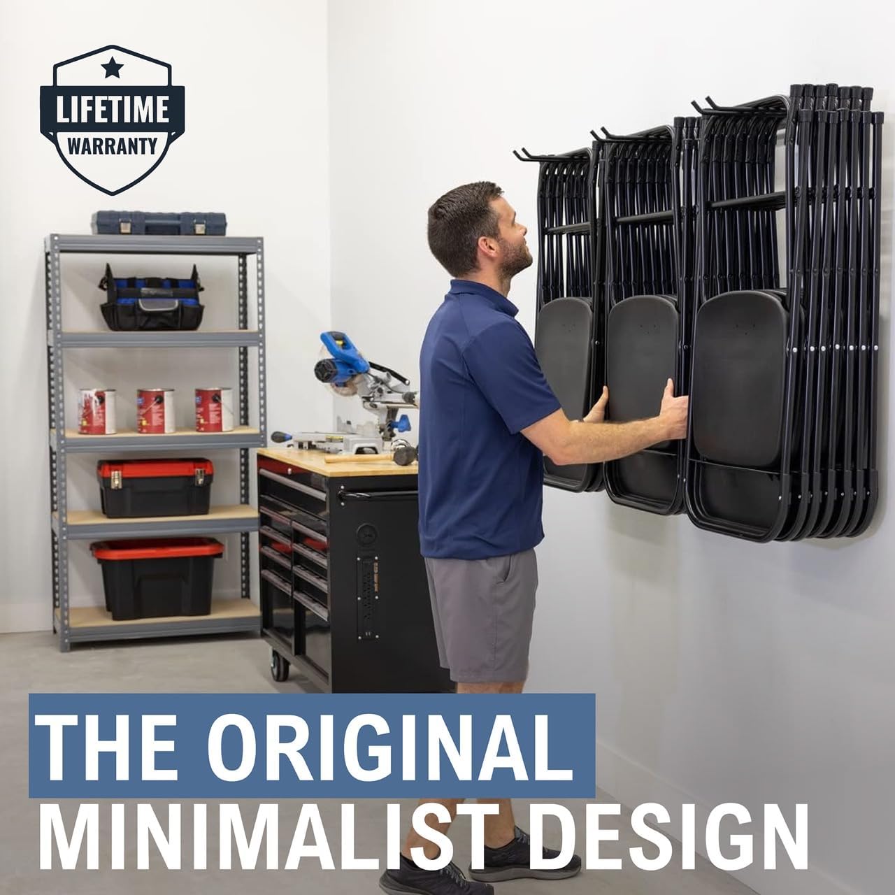 - Easy Wall Mount Installation – The folding chair wall mount design includes quality hardware and fits any wall stud spacing. No guesswork or complicated assembly – just mount and go! Perfect for DIY garage upgrades and garage organization setups.