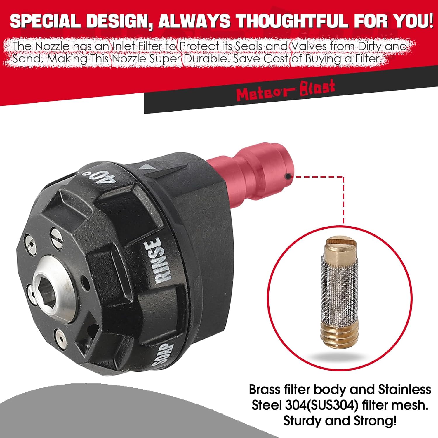 Meteor Blast Pressure Washer Nozzle, 6-in-1 Quick Change over and Adjustable, Power Washer Tips Replacement with 1/4 inch Quick Connector, MAX 4500PSI for Pressure Washer