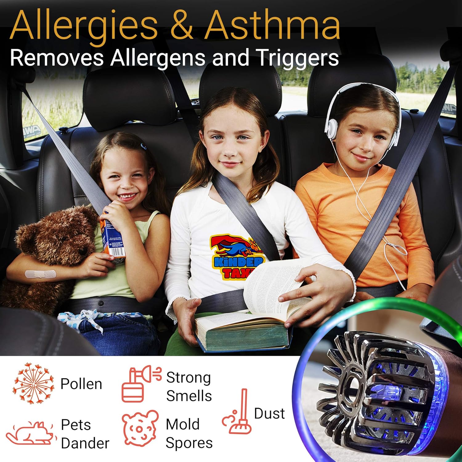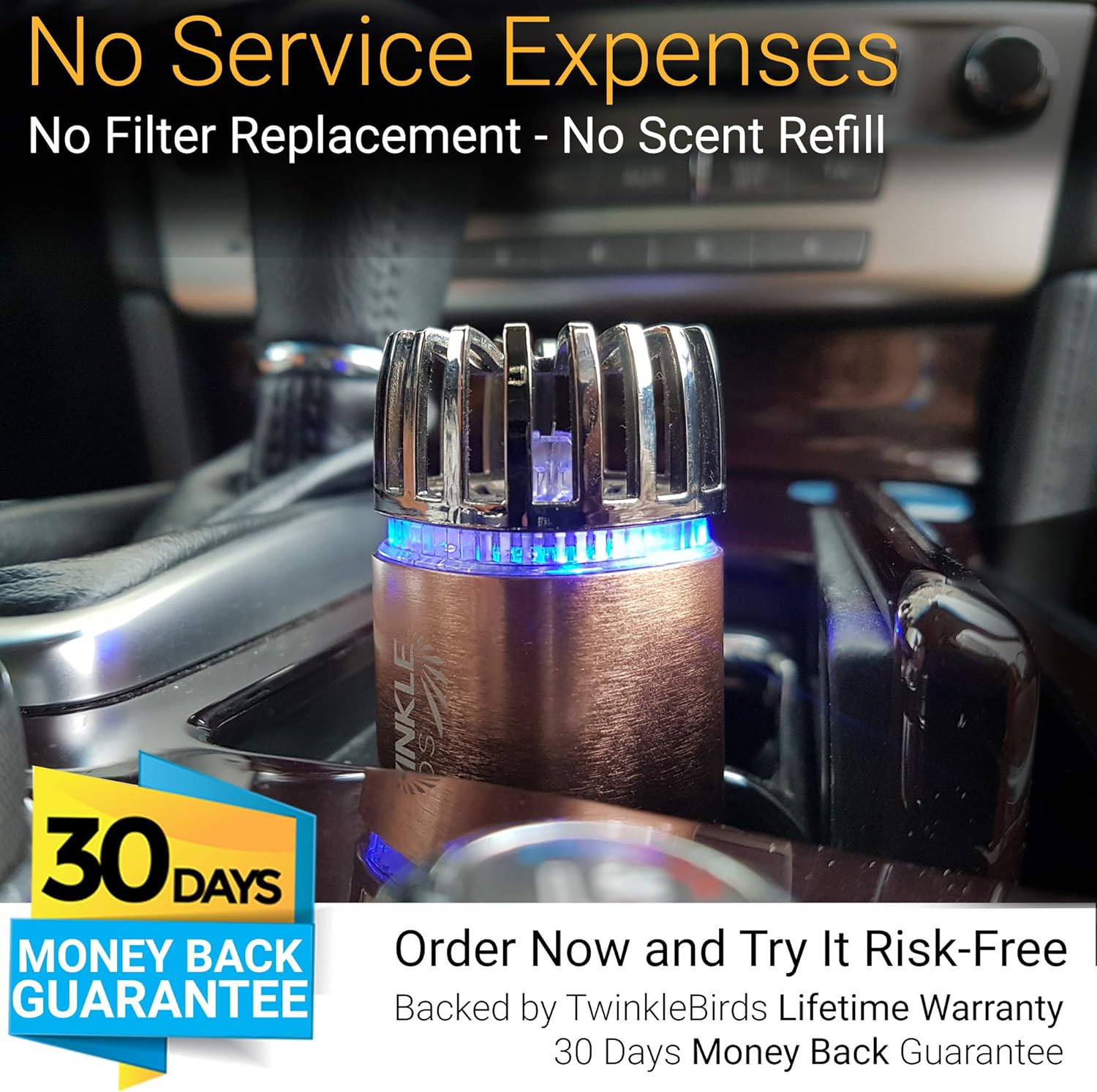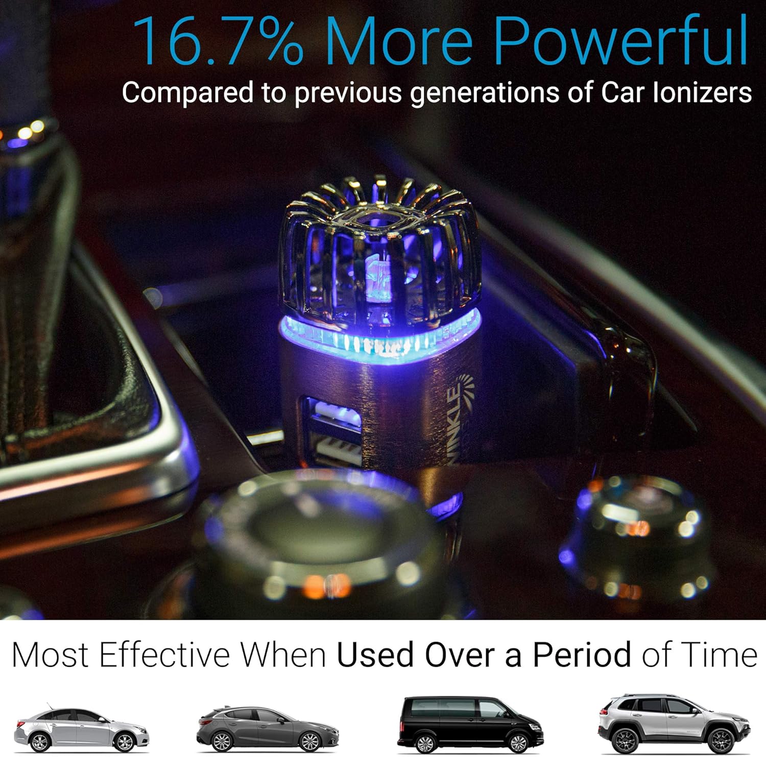 Car Air Purifier Ionizer - 12V Plug-in Ionic Anti-Microbial Car Deodorizer with Dual USB Charger - Smoke Smell, Pet and Food Odors, Allergens, Viruses Eliminator for Car (Matte Copper)