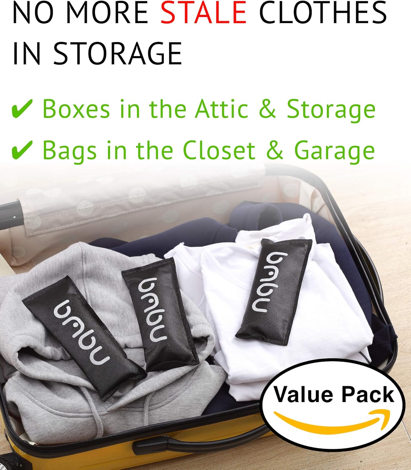 - Our 12 pack 80g all natural 100% bamboo charcoal air purifying bags. Each charcoal odor absorber eliminates bad, foul smells from shoes, sneakers, gym bags, boxing gloves, shoe/food odor eliminator. Also use our deoderizers for home use in your bathroom, kitchen, shoe drawers, closet, storage, luggage, basement, dead animal odor eliminator. Each bag lasts up to 1 full year!