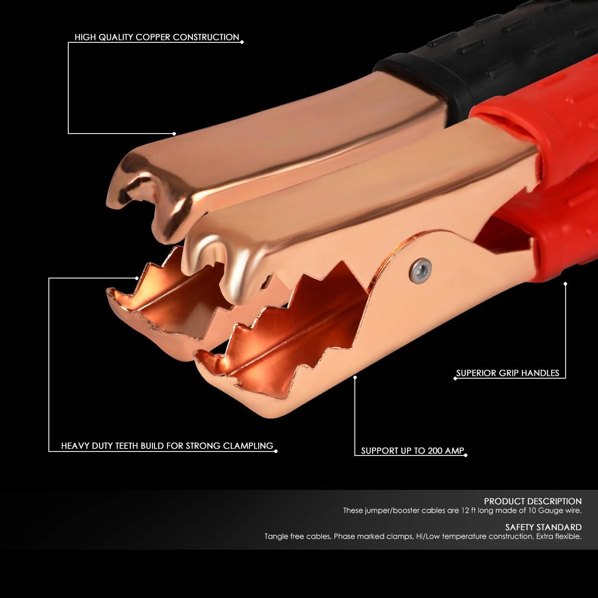 Auto Dynasty Heavy Duty 12Ft 10Gauge Booster Cables Power Jumper 200AMP Emergency Battery Start Car/Motorcycle