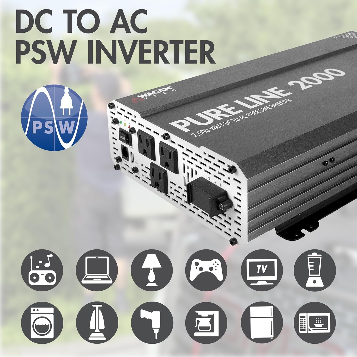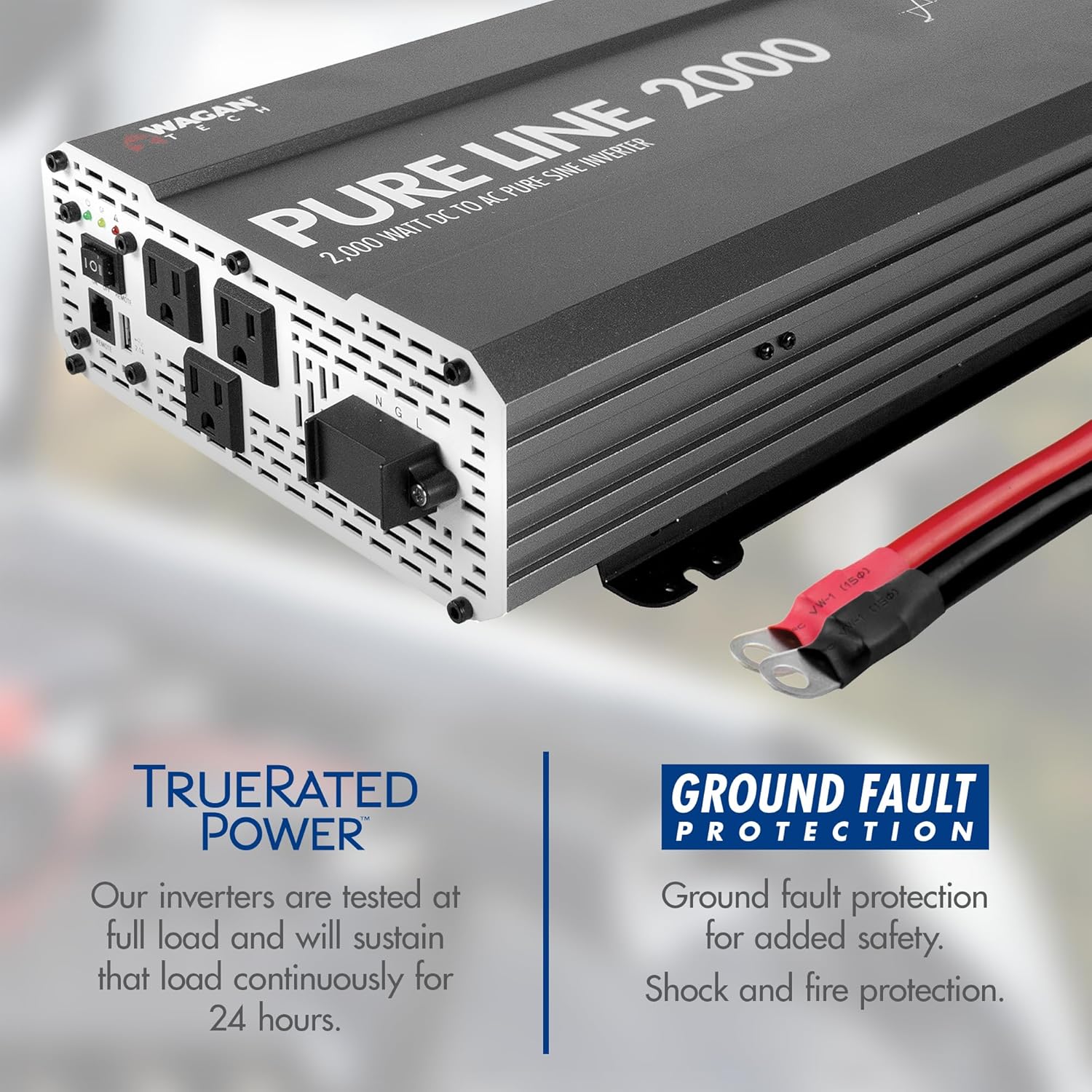 Wagan EL3808 Pure Line Power Inverter 2000 Watt DC 12V to 110V AC Car Pure Sine Wave Power Inverter for Home RV Camping Van Life Off Grid ETL Certified
