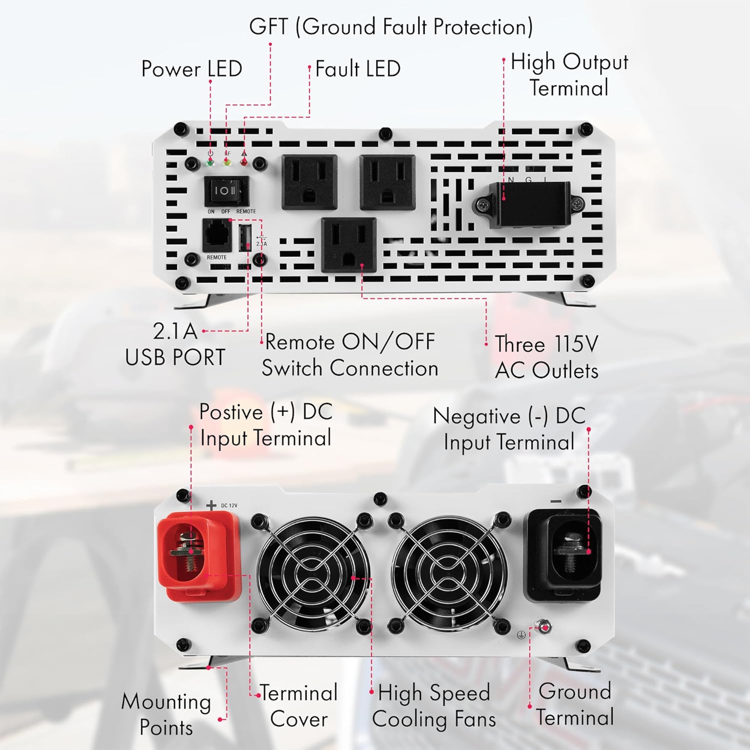 - PURE SINE WAVE POWER INVERTER: The compact and efficient inverter not only looks good but performs great; the new Pure Line Inverter will change the way that you look at PSW Power Inverters!