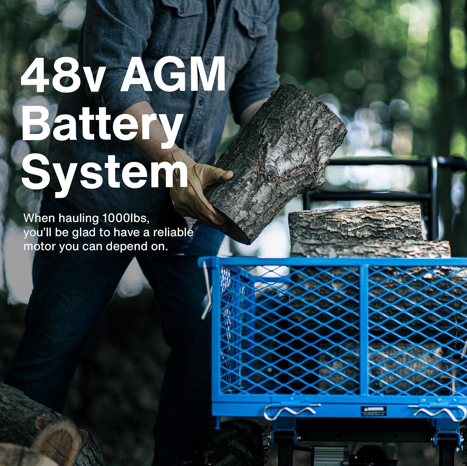 - Powerful 500W Motor & High Capacity: Equipped with a 500W lead-acid battery-powered motor and a 48V brushless motor system, the Landworks AGM Electric Utility Cart delivers robust performance, supporting up to 500 lbs load capacity and 1000 lbs towing. Perfect for handling heavy-duty tasks in garages, warehouses, and outdoor settings.