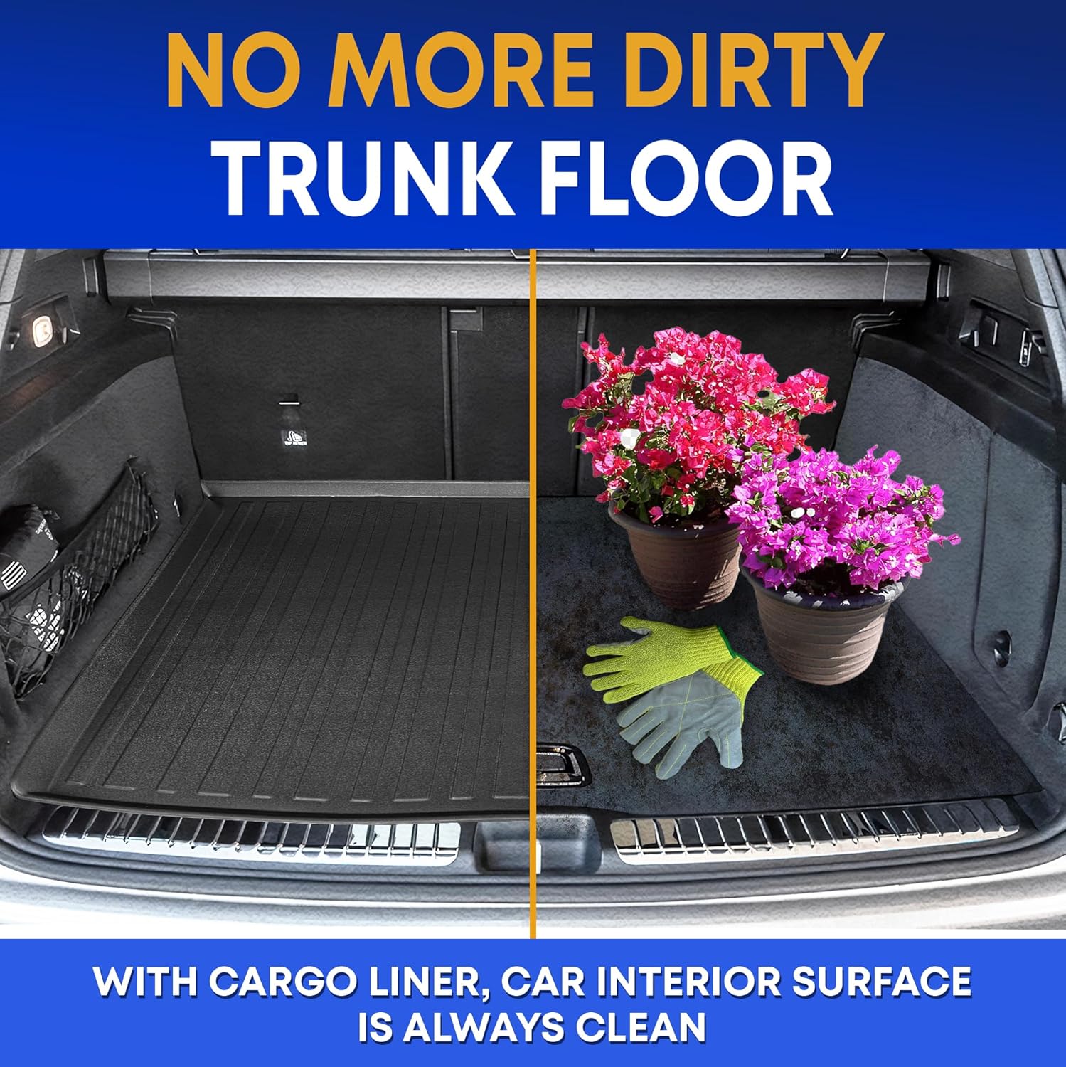 - EASY-CLEAN DESIGN - Featuring an anti-skid, stain-resistant surface, our trunk liners are a breeze to maintain. The raised exterior lip traps spills, maintaining your trunk's cleanliness. Keep it looking fresh by simply rinsing with water and watch it restore its gleam!