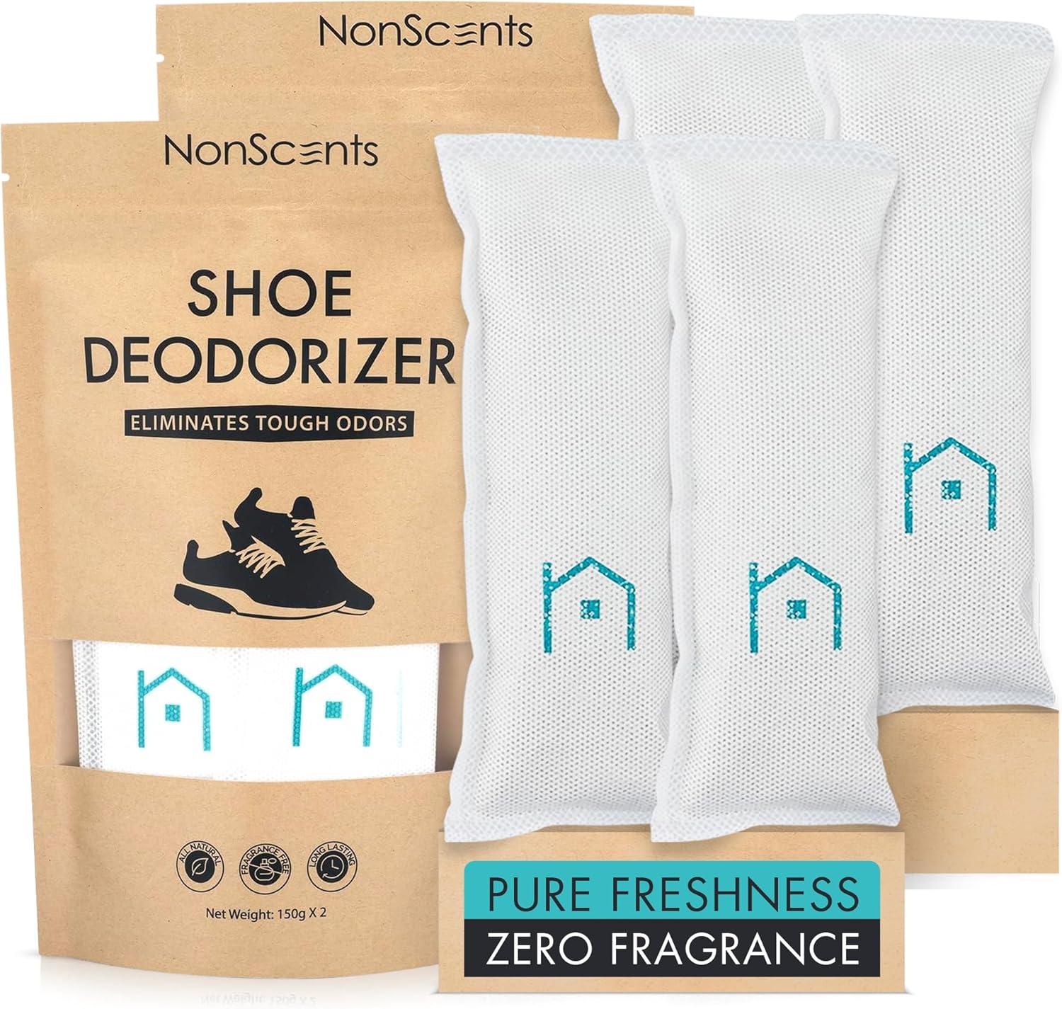 NonScents Shoe Deodorizer 2-Pack (4 Count) - Odor Eliminator, Air Freshener, Smell Absorber, Scent Remover for Shoes, Gym Bags, Soccer Cleats, Closets, Pet Area, Reusable - Shoe Deodorant
