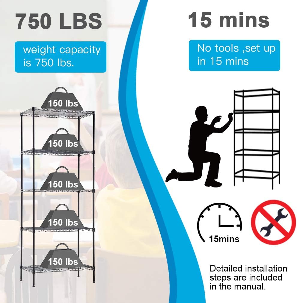 - √【Large storage】: The wire shelving unit provide an enormous amount of space and strong shelves; This metal shelf have a lot of room for storage; The storage shelves doesn't Occupy too much space, but it can create more Additional space; Wire shelving unit metal shelf storage shelves