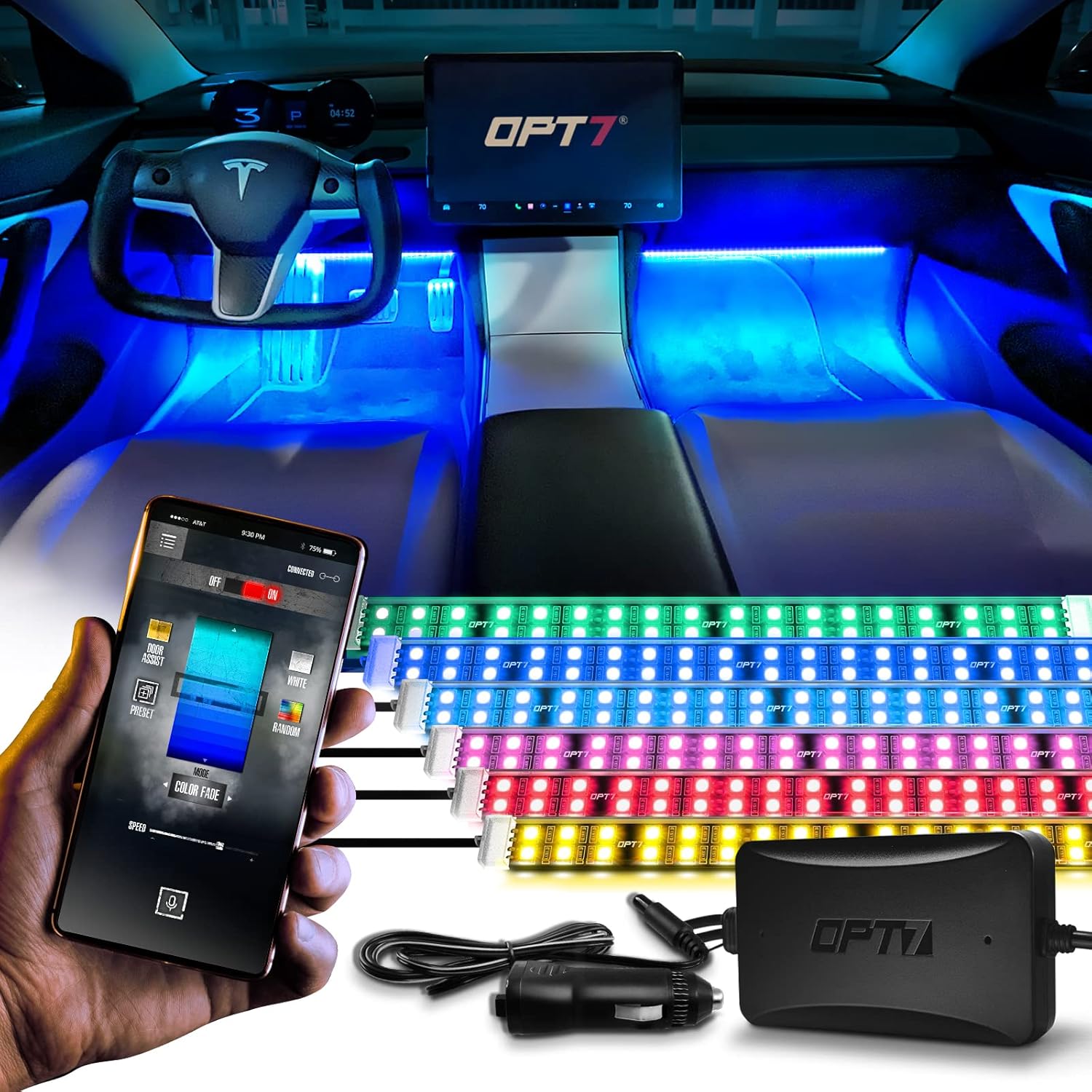 - Double Glow, Double Ambience: OPT7βs premium dual-row LED light strip floods your vehicle with brighter, more immersive lighting experience! Whether you're cruising through the city, chilling with friends, or flexing your style at a car meet, this high-output light strip brings out vibrant color depth and adds next-level ambience that syncs to every vibe.