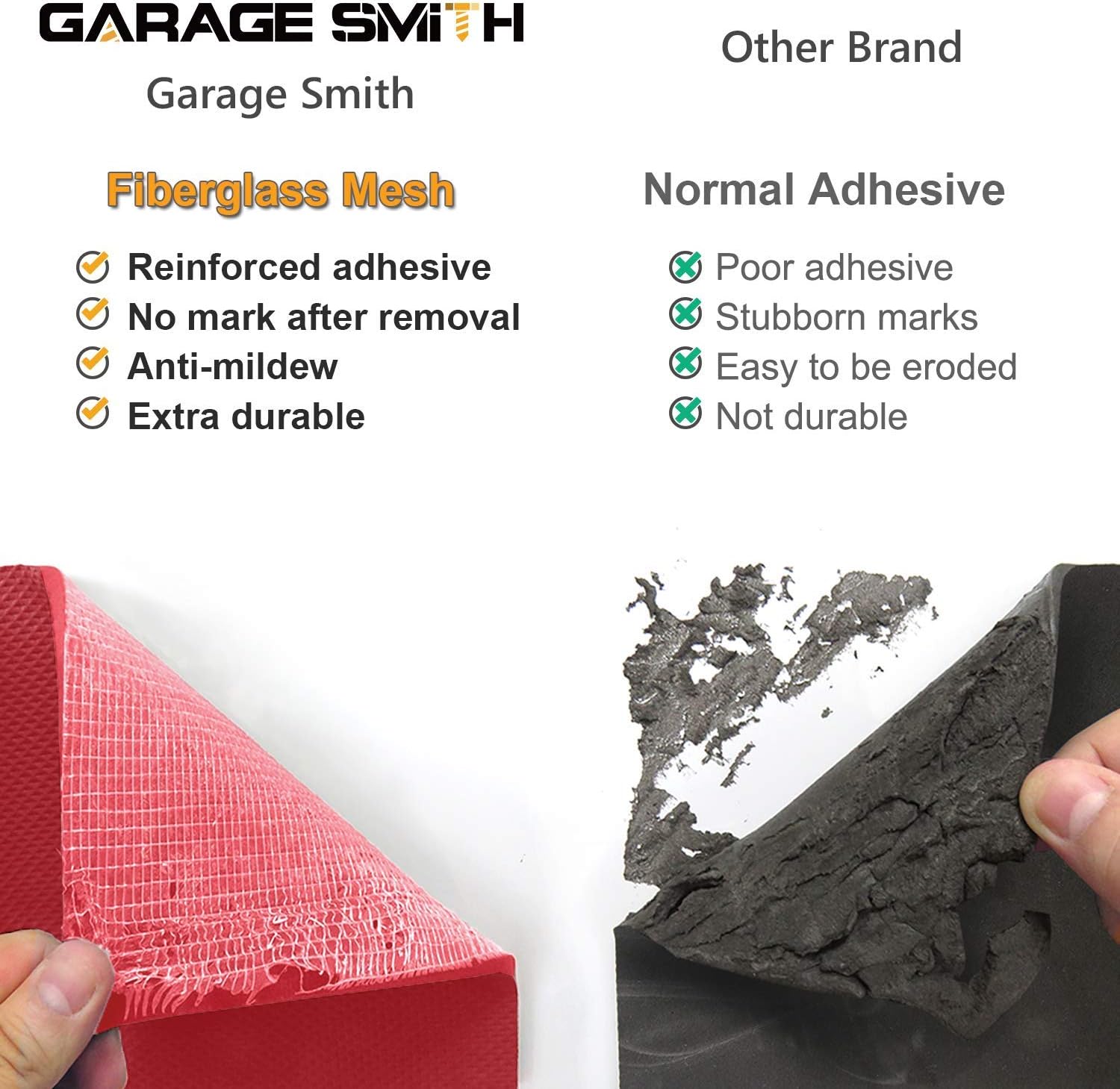 - Fiberglass Mesh Adhesive Structure β The adhesive force is reinforced by its unique integrated back adhesive structure. The interlaced fiberglass allows the wall protectors to be removed without tearing the soft protector or leaving marks on the wall. The non-tearing self-adhesive cover can be peeled off easily.