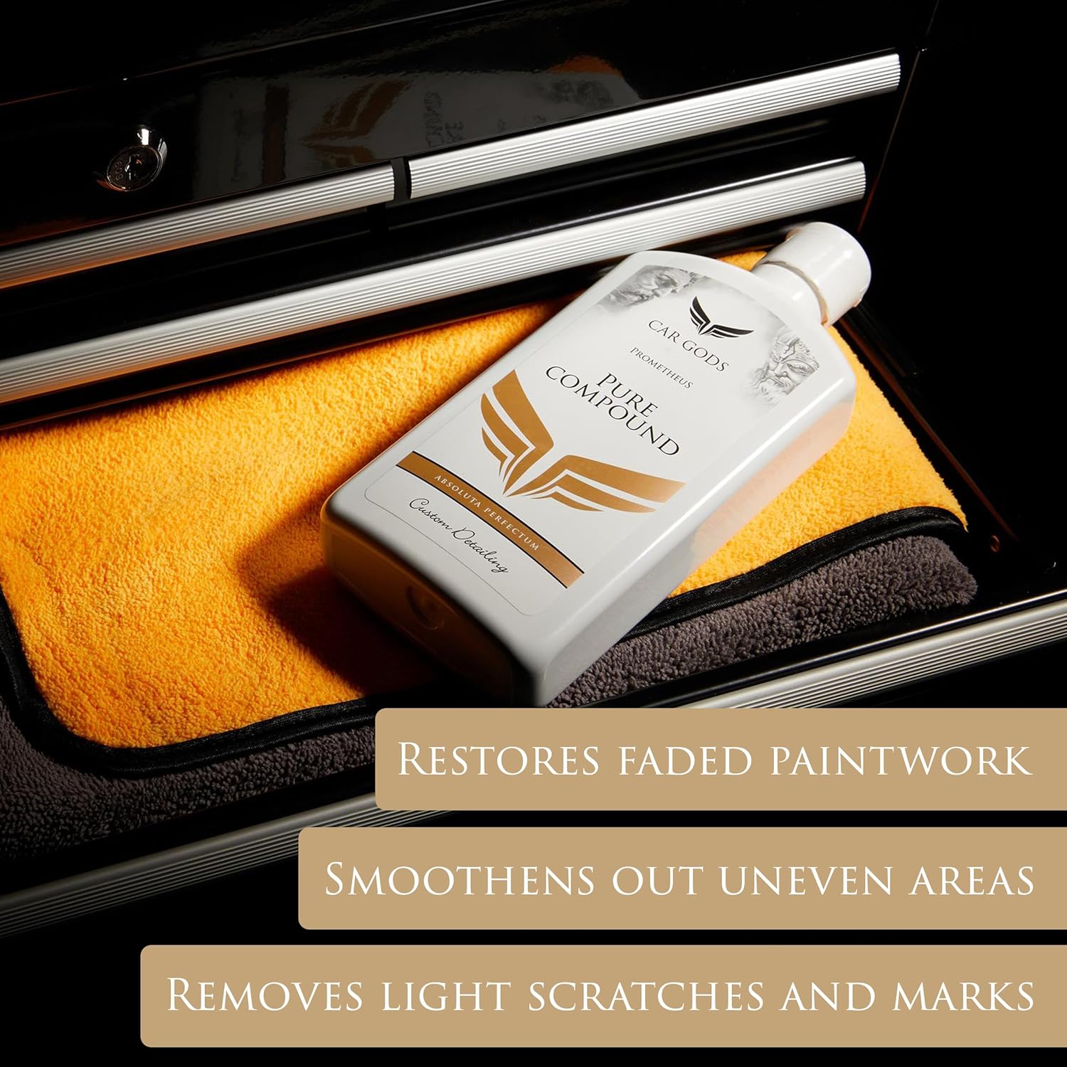 - Works as a pre-wax treatment and can be sealed with car gods ultimum perfectum wax of the gods