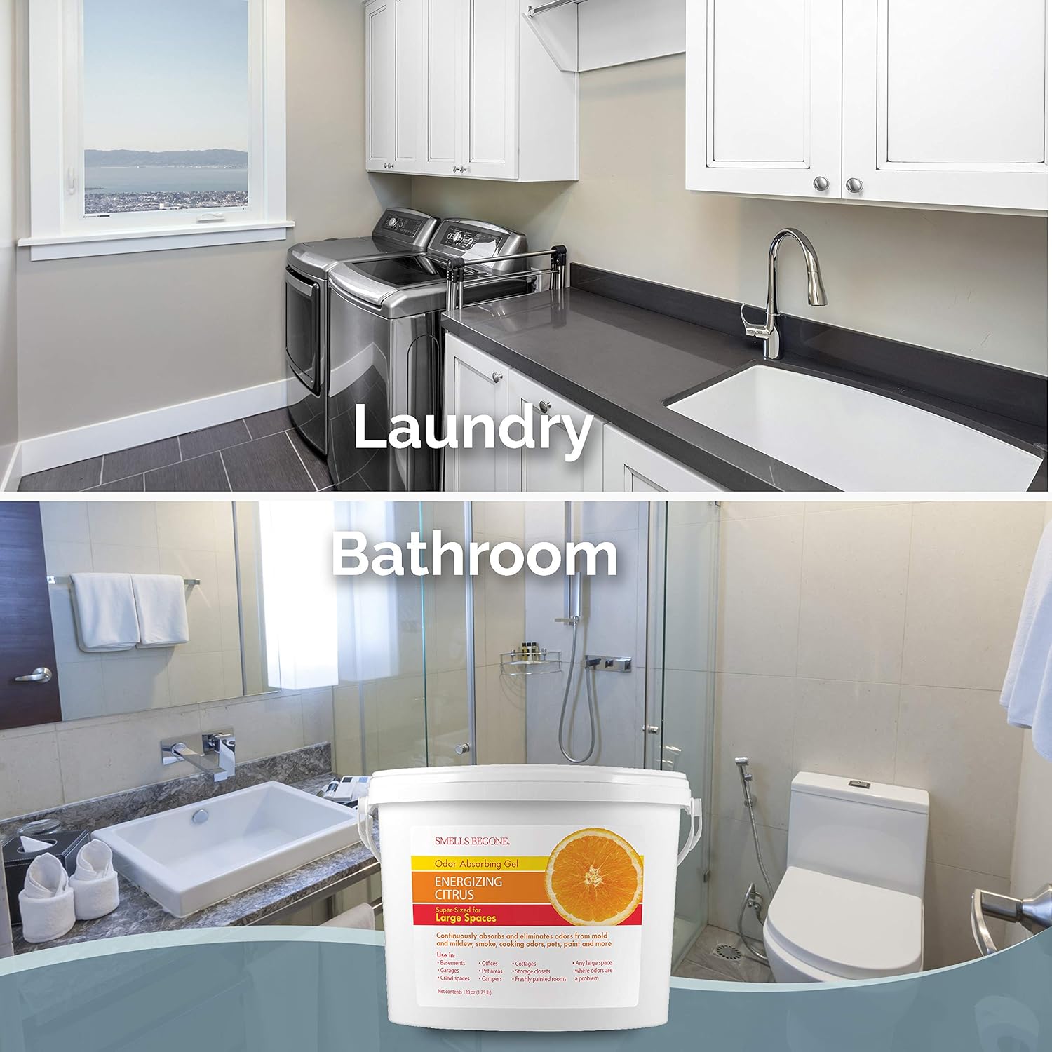 SMELLS BEGONE 1-Gallon Odor Absorber Gel - Air Freshener & Odor Eliminator for Homes, Garages & Commercial Buildings - Industrial Size - Energizing Citrus Scent