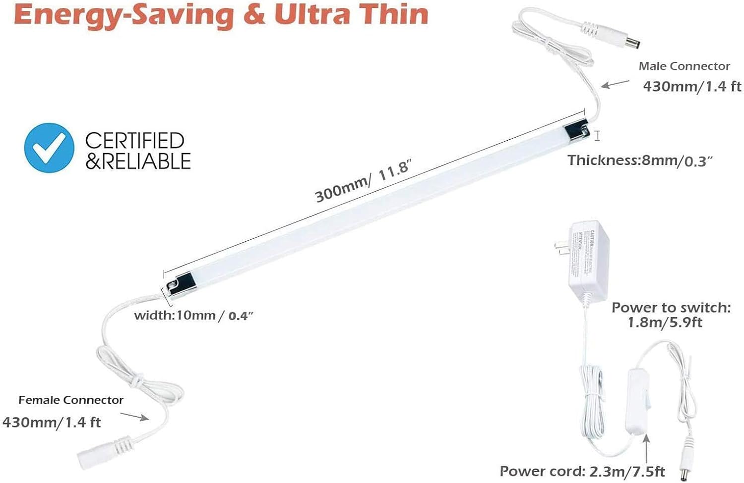 - Advanced Run Cold Technology: — The Slim LED light bars don't give off any heat, cool-touch design — ETL-LISTED 12V adapter to ensure optimal safety.