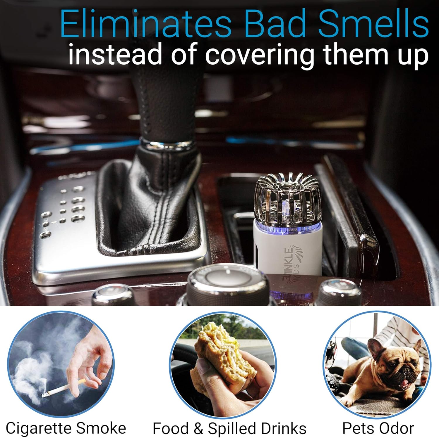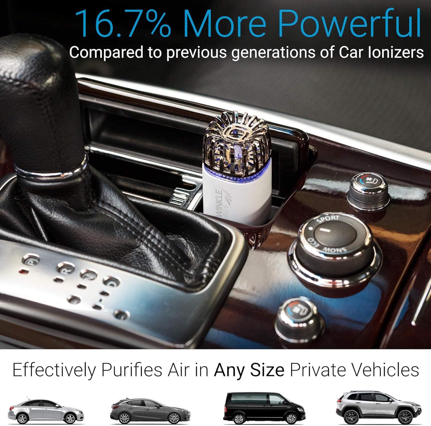 Car Air Purifier Ionizer - 12V Plug-in Ionic Anti-Microbial Car Deodorizer with Dual USB Charger - Smoke Smell, Pet and Food Odors, Allergens, Viruses Eliminator for Car (Matte White)