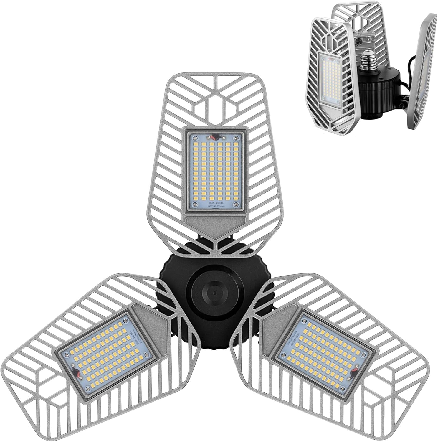 LED Garage Lights, Deformable LED Garage Ceiling Lights 9000 Lumens, 82W CRI 80 Led Shop Lights for Garage, Adjustable Garage Lights, Led Garage Lighting (No Motion Activated) (1-Pack)