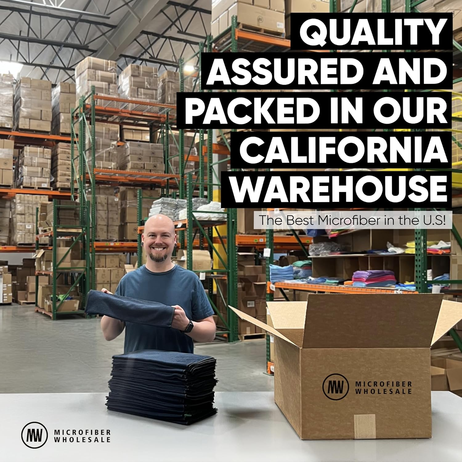 Bulk 16" x 16" All Purpose Microfiber Towels Wholesale - Case Quantity (200 Count) | Large | No Fraying | High Density Microfiber | Zero Chemical Cleaner | Long-Lasting (Black)