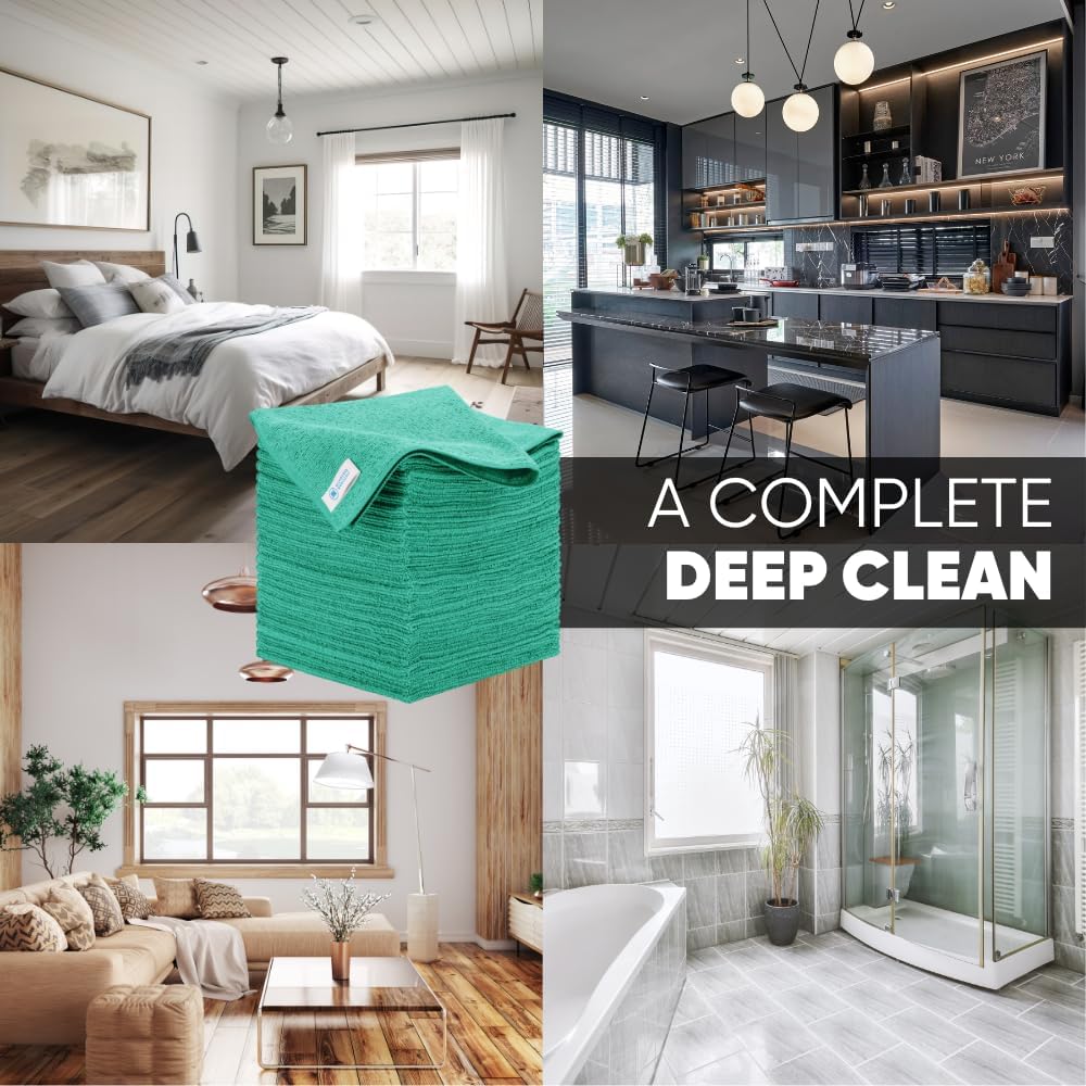 Bulk 16" x 16" All Purpose Microfiber Towels Wholesale - Case Quantity (200 Count) | Large | No Fraying | High Density Microfiber | Zero Chemical Cleaner | Long-Lasting (Green)