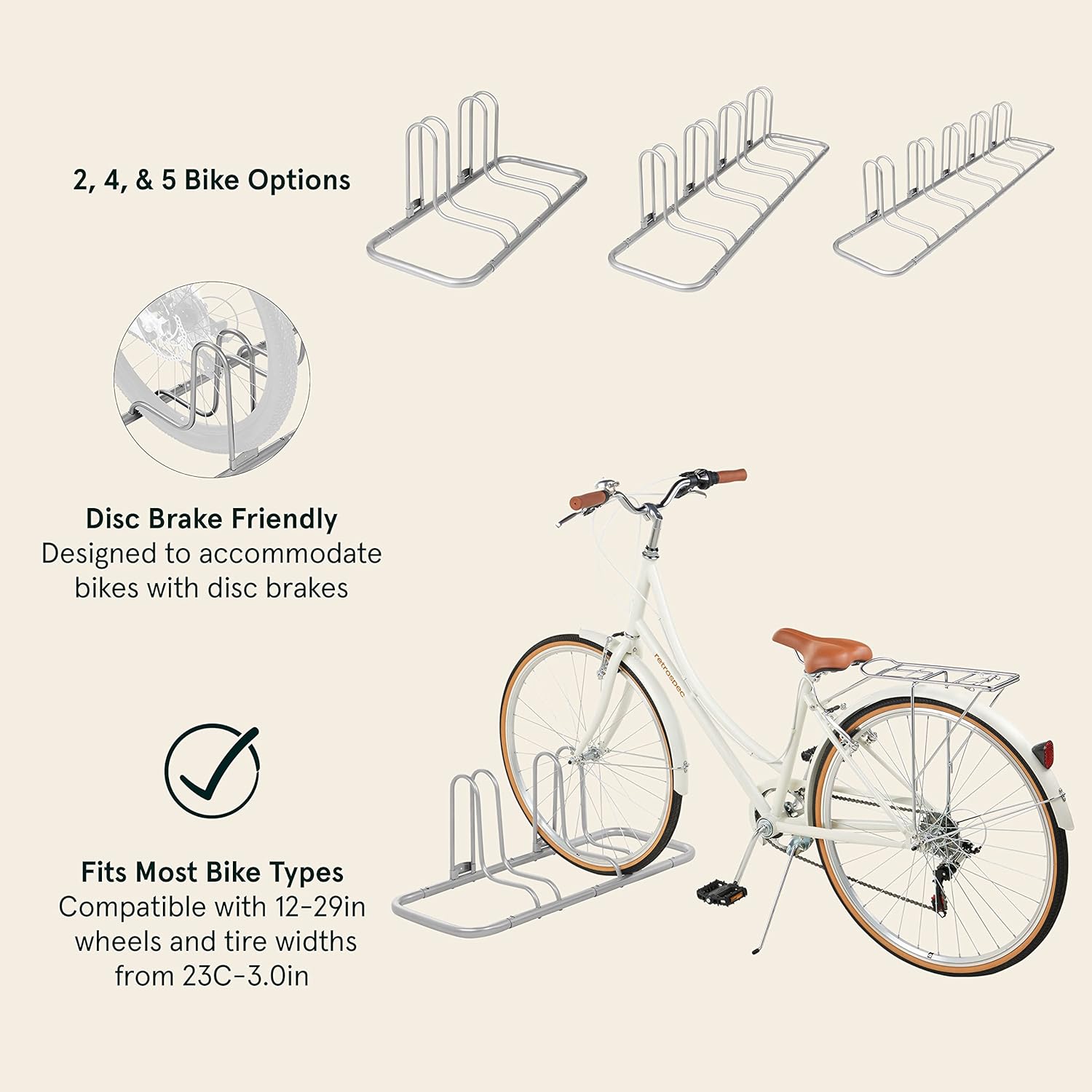 - UNIVERSAL COMPATIBILITY: Engineered to accommodate bikes with disc brakes, wide tires, and various frame designs. The adjustable rack positions ensure proper spacing between stored bicycles