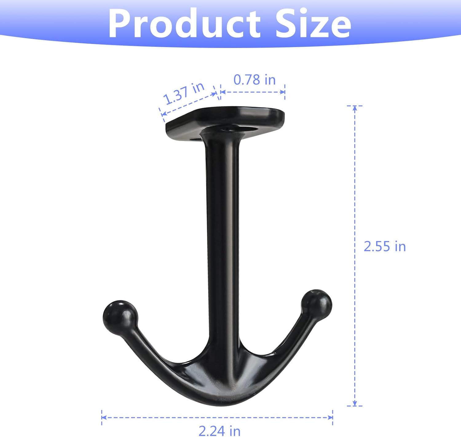 Ball Two Prong Ceiling Hook for Closet Top Bathroom Kitchen Cabinet Garage Pack of 8 (Black)