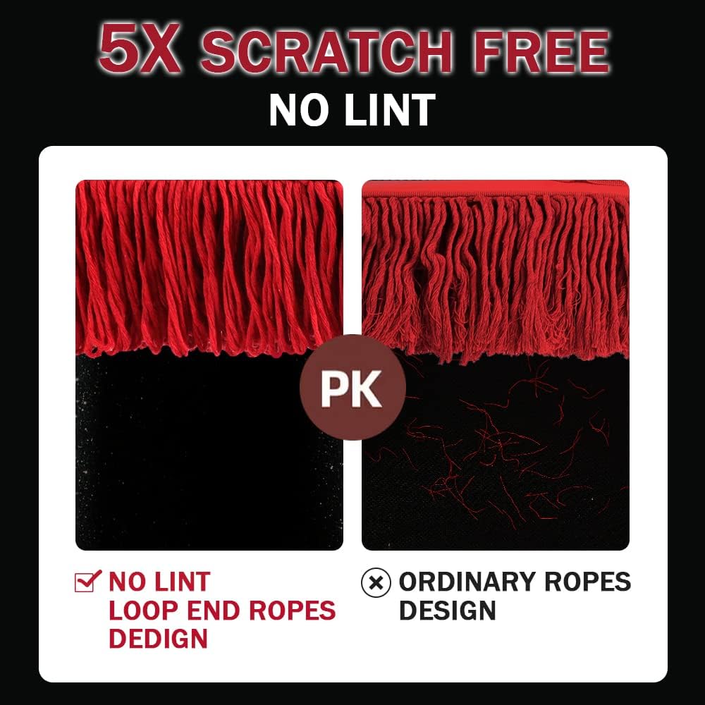 - Soft, natural, 100% cotton fiber threads are always gentle on paint, glass, plastic, chrome, metal and other surfaces, won't scratch the finish, and won't leave lint behind after use with its loop end