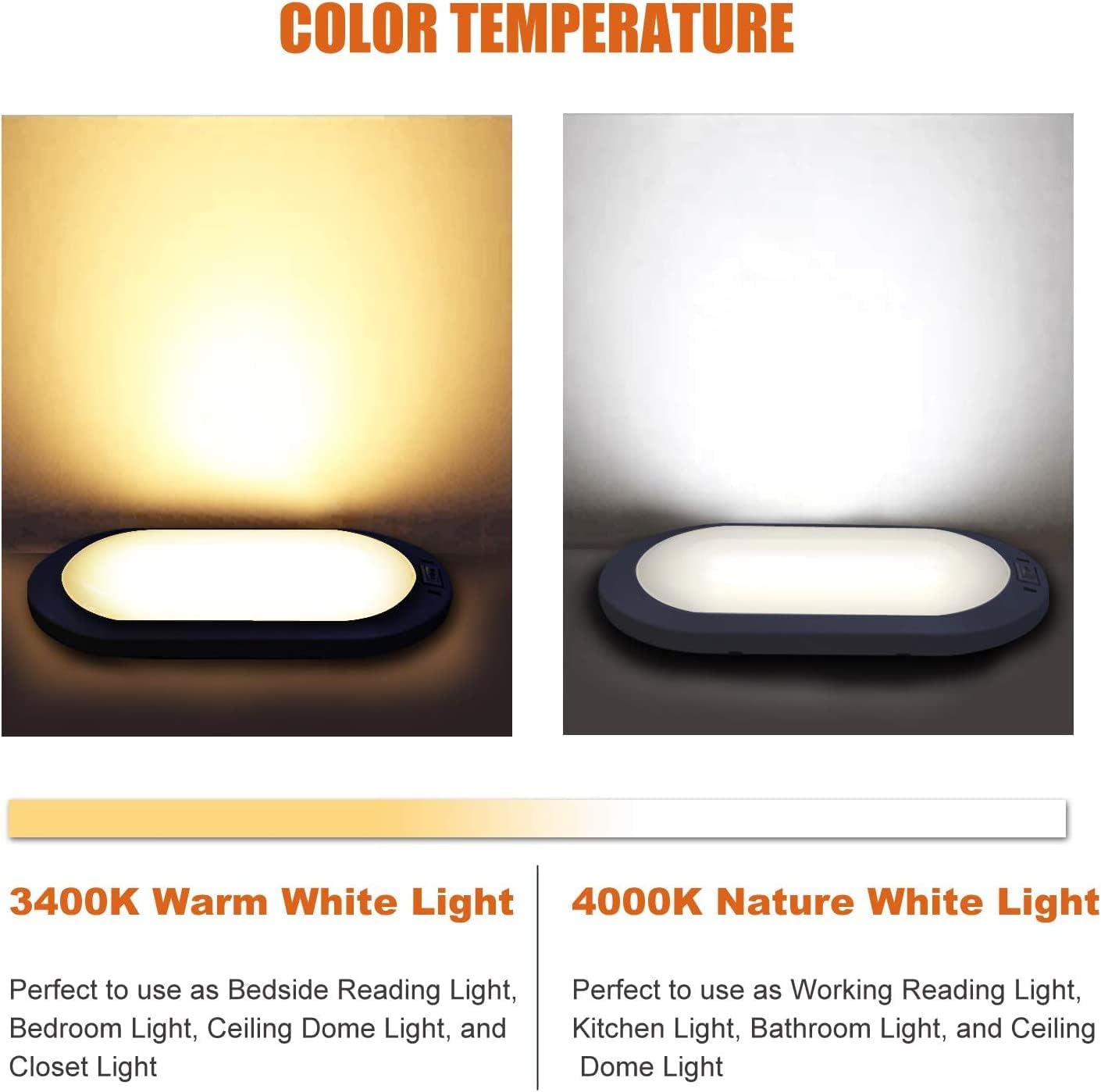 - Smart Dual-Tone Lighting - Set Your RV's Mood in Seconds: Instantly switch between warm white (3000K cozy ambiance) and cool daylight (4000K task lighting) with a patented 3-way rocker switch. Perfect for late-night relaxation or early morning prep.